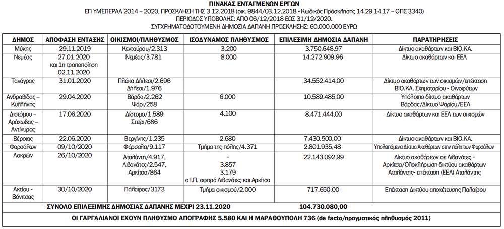 Μας είπαν: Δεν χρηματοδοτούνται οικισμοί, που είχαν κάτω από 2.000 κατοίκους στην απογραφή. Απαντάμε πως δεν είναι αλήθεια.