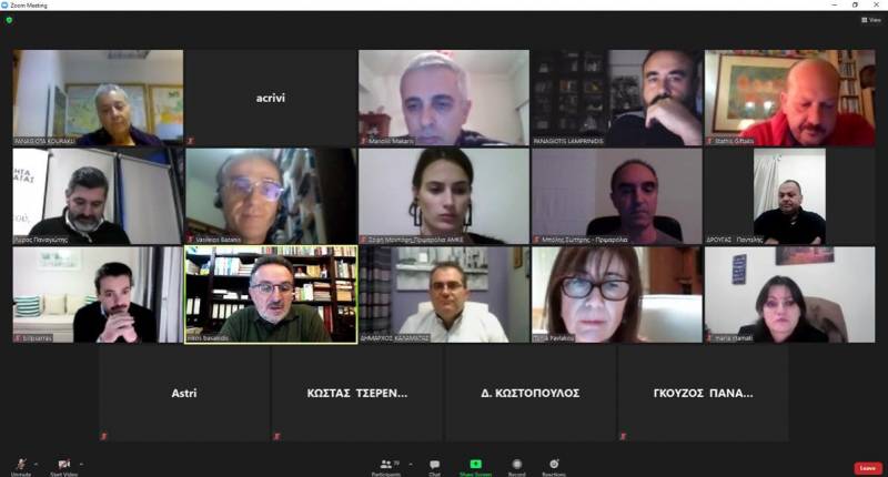Στην τηλεδιάσκεψη υπό τον δήμαρχο Θανάση Βασιλόπουλο, συμμετείχαν ο πρόεδρος της “Φάρις” Παντελής Δρούγας, ο επικεφαλής της παράταξης “Ανοιχτός Δήμος - Ενεργοί Πολίτες” Μανώλης Μάκαρης, ο διευθυντής του Δημοτικού Ωδείου Στάθης Γυφτάκης, ο διευθυντής του Εικαστικού Εργαστηρίου Παναγιώτης Λαμπρινίδης, ο εικαστικός Βασίλειος Ψαρράς, καθηγητής Τμήματος Παραστατικών και Ψηφιακών Τεχνών της Σχολής Καλών Τεχνών του Πανεπιστημίου Πελοποννήσου, η πρόεδρος της Ενωσης Μεσσηνίων Συγγραφέων Αντωνία Παυλάκου, ο πρόεδρος του Συνδέσμου Φιλολόγων Μεσσηνίας Βασίλειος Μπαζάνης και τα μέλη της Συντονιστικής Νίκος Μπασακίδης, Παναγιώτης Λύρας, Παναγιώτα Κουράκλη και Σωτήρης Μπόλης.