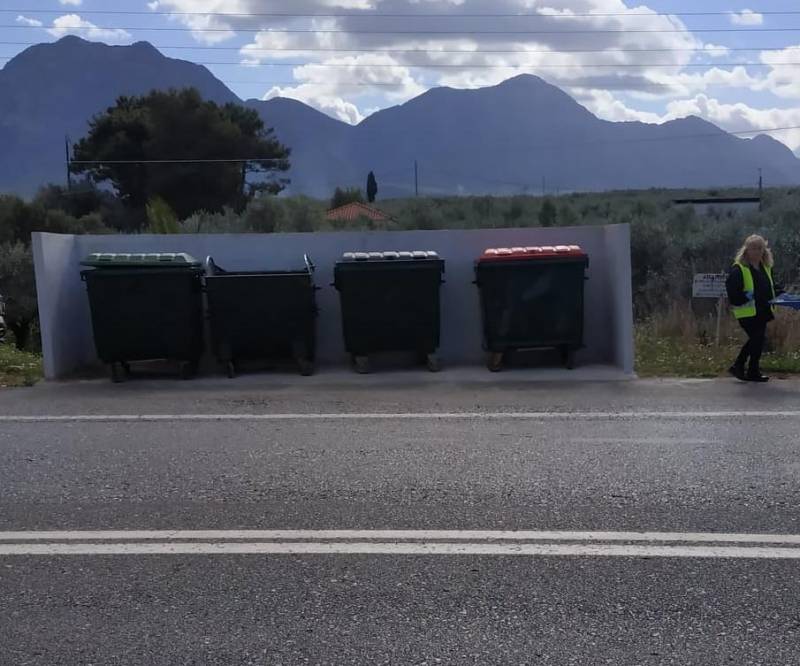 Σε έναν τέτοιο χώρο στην περιοχή της Τερψιθέας αναφέρεται και ο δήμαρχος Γιώργος Λεβεντάκης στα μέσα κοινωνικής δικτύωσης σημειώνοντας: «Δημιουργήθηκε ειδικός χώρος για την τακτοποίηση των κάδων απορριμμάτων, σε σημείο επί της εθνικής οδού Κυπαρισσίας - Φιλιατρών (περιοχή Τερψιθέα), έτσι ώστε να διευκολυνθεί η αποκομιδή τους και να συμβάλουμε, με τον τρόπο αυτό, στη διατήρηση της καθαριότητας».