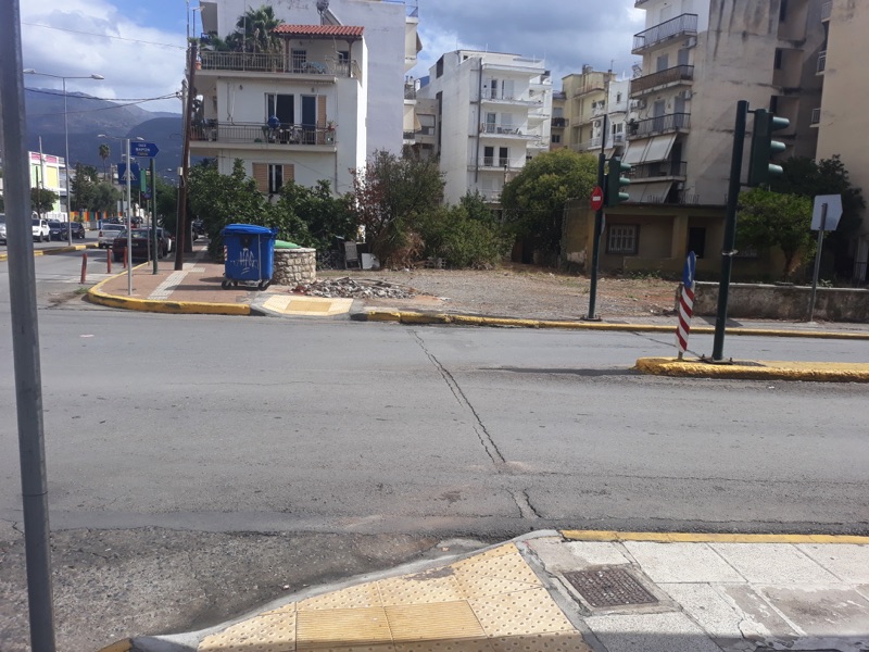 Συνεχίζοντας και φτάνοντας στη διασταύρωση με την Ακρίτα, στα φανάρια, στην ανατολική πλευρά δεν υπάρχει διάβαση για ΑμεΑ (φωτό 3). Η διάβαση είναι λίγο πιο πέρα, στο νότιο πεζοδρόμιο της Βασ. Γεωργίου, με κίνδυνο, καθώς τα ΑμεΑ για κάποια μέτρα πρέπει να κινηθούν στο δρόμο.