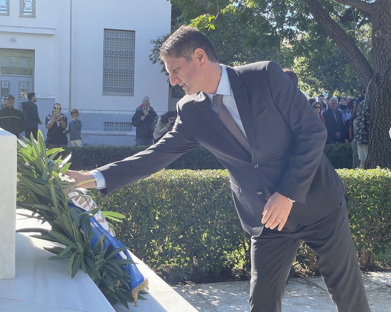 Στη συνέχεια τελέστηκε επιμνημόσυνη δέηση στο Ηρώο, στην κεντρική πλατεία της Μεσσήνης, τηρήθηκε ενός λεπτού σιγή στη μνήμη των εθνικών ηρώων και ακολούθησε η κατάθεση στεφάνων από τον δήμαρχο Μεσσήνης Γιώργο Αθανασόπουλο, τον θεματικό αντιπεριφερειάρχη Ανδρέα Τσουκαλά, τον εκπρόσωπο των Ενόπλων Δυνάμεων της 120 ΠΕΑ, αντισμήναρχο ιπτάμενο Μιχαήλ Χαντέ, τον εκπρόσωπο των Σωμάτων Ασφαλείας διοικητή του Α.Τ. Μεσσήνης Γιώργο Χαραλαμπάκη, τον εκπρόσωπο του Πυροσβεστικού Σώματος υποπυραγό Ιωάννη Κυρίτση, τον πρόεδρο της Κοινότητας Μεσσήνης Νίκο Ρούτση, από μαθητές όλων των σχολείων της Πρωτοβάθμιας και Δευτεροβάθμιας Εκπαίδευσης της Μεσσήνης και από αντιπροσωπείες του Πολιτιστικού Εξωραϊστικού Συλλόγου Μεσσήνης, του Πολιτιστικού Συλλόγου «Οι φίλοι της Μεσσήνης» και του Ιππικού Ομίλου Μεσσήνης”.