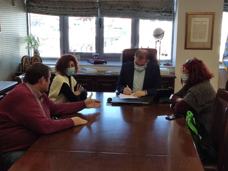 Τη σύμβαση για την περισυλλογή και τη φιλοξενία αδέσποτων ζώων υπέγραψαν χθες ο δήμαρχος Θανάσης Βασιλόπουλος και η εκπρόσωπος του Φιλοζωικού Ομίλου της πόλης Κατερίνα Πεζώνη.
