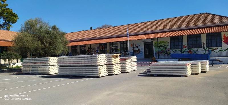 Χθες, Τρίτη απόγευμα, εντελώς ξαφνικά και αυθαίρετα, καθώς το σχολείο λειτουργεί, κατέλαβαν τον προαύλιο χώρο με βιομηχανικά πάνελς και απαίτησαν να ξεκινήσουν εργασίες σήμερα Τετάρτη.