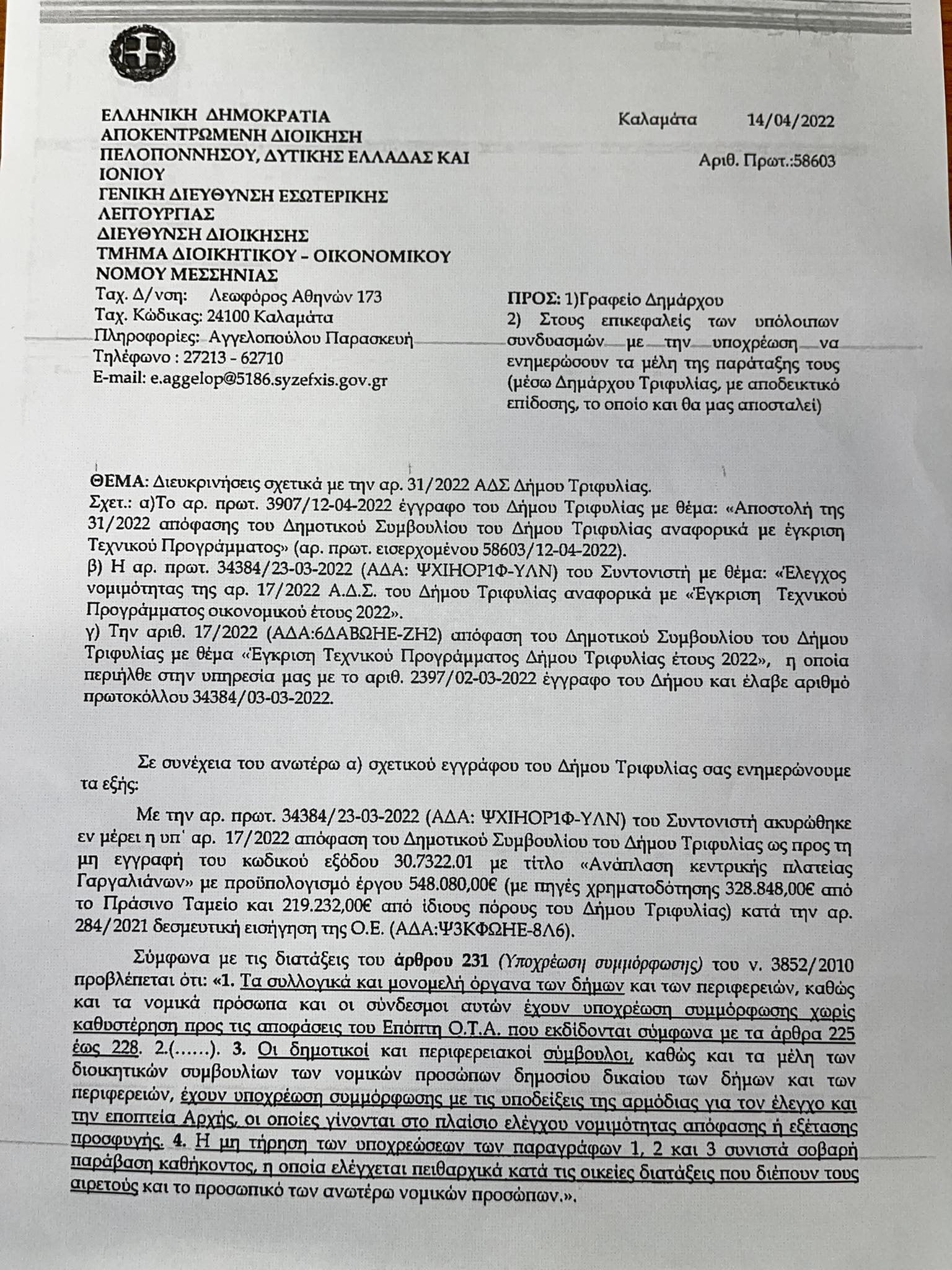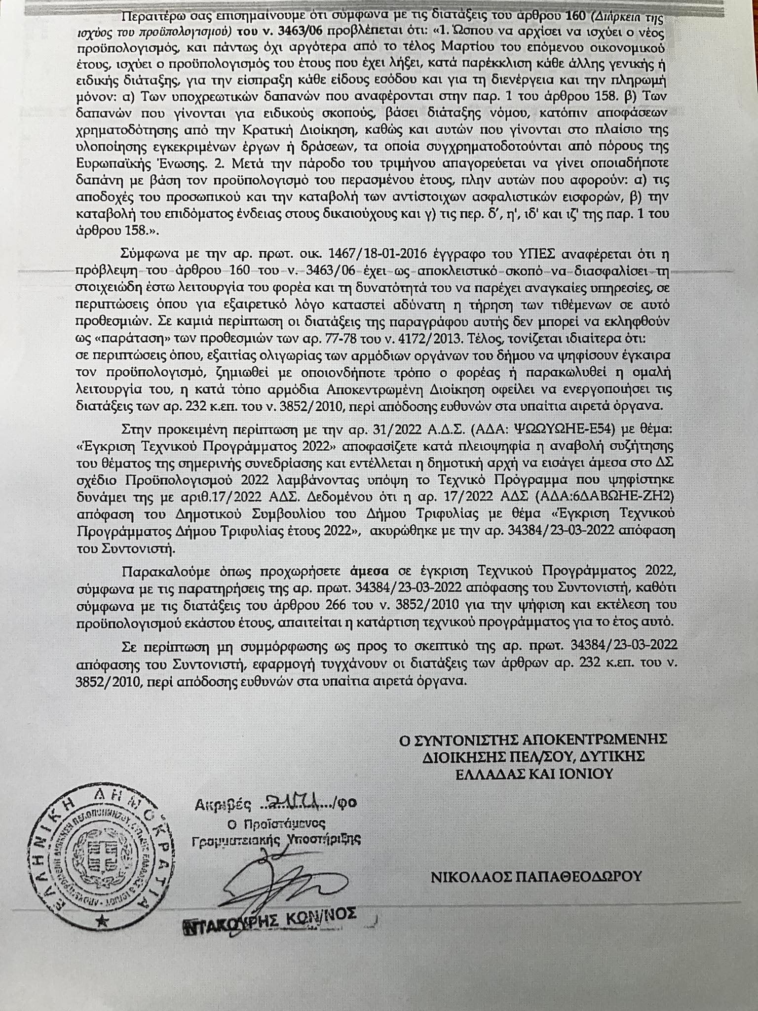 Ακολουθεί το έγγραφο της Αποκεντρωμένης Διοίκησης: