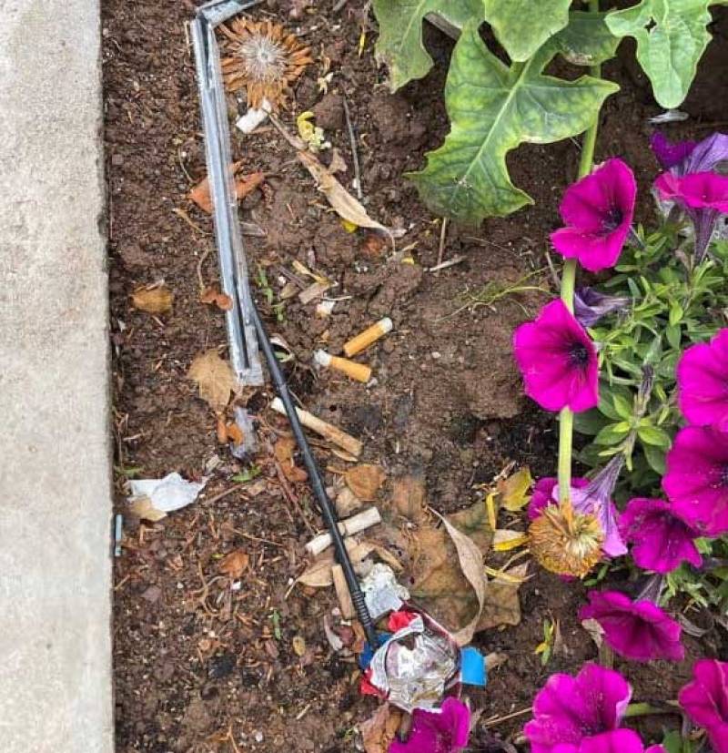 Και παρουσιάζει εικόνες που δείχνουν σκουπίδια να ξεχειλίζουν από τους κάδους και αποτσίγαρα πεταμένα μέσα στα παρτέρια.