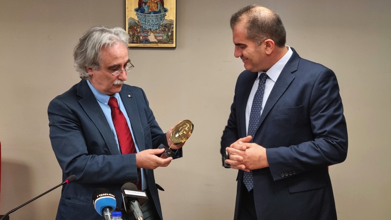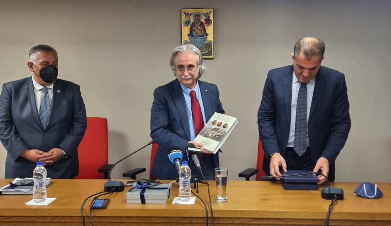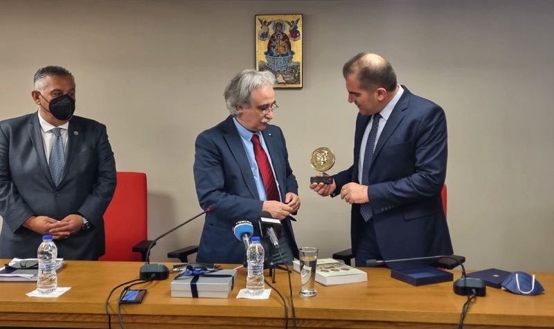 Ο δήμαρχος προσέφερε στον Κ. Γουλιάμο τιμητική πλακέτα του δήμου “ως αναγνώριση της διακεκριμένης συμβολής του στα γράμματα και τις τέχνες του Ελληνισμού”. Ακόμη, την επετειακή έκδοση του δήμου για τα 200 χρόνια από την Επανάσταση του ’21 και το ανάγλυφο του δήμου και της “Φάρις” που φέρει την κεφαλή του ιδρυτή των Αρχαίων Φαρών, Φάριος, γιου του Ερμή και της Φιλοδάμειας.