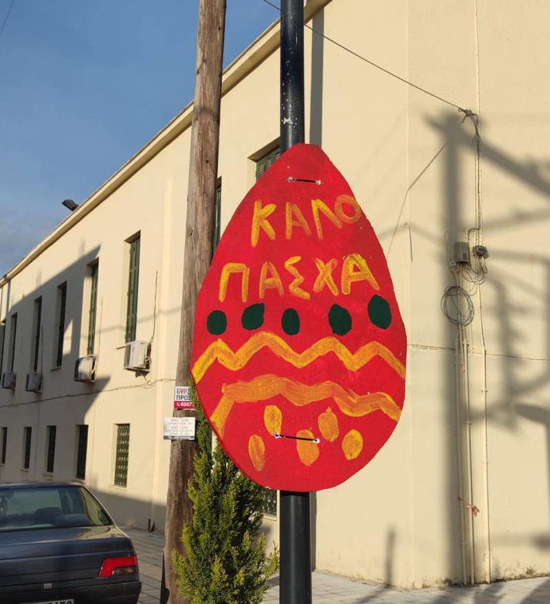 Οι μαθητές μέσα από τη συνεργασία των Συλλόγων Γονέων και Κηδεμόνων των δύο σχολείων και του Εμπορικού Συλλόγου έφτιαξαν δεκάδες όμορφες πασχαλινές κατασκευές, τις χρωμάτισαν και πλέον διακοσμούν την πόλη.