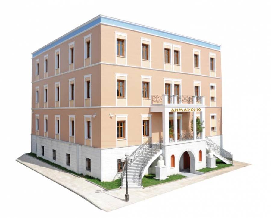 Η κατασκευή του νέου δημαρχείου ξεκίνησε στα τέλη του 2009, σε οικόπεδο ιδιοκτησίας του δήμου στην πλατεία της Μεγαλόπολης. Το οικόπεδο αποτελεί δωρεά προς το δήμο των αδελφών Σταθοπούλου από το Ισσαρη, ενώ για την ολοκλήρωση του κτηρίου καθοριστική ήταν η χορηγία του εφοπλιστή Θανάση Μαρτίνου από τη Στεμνίτσα.