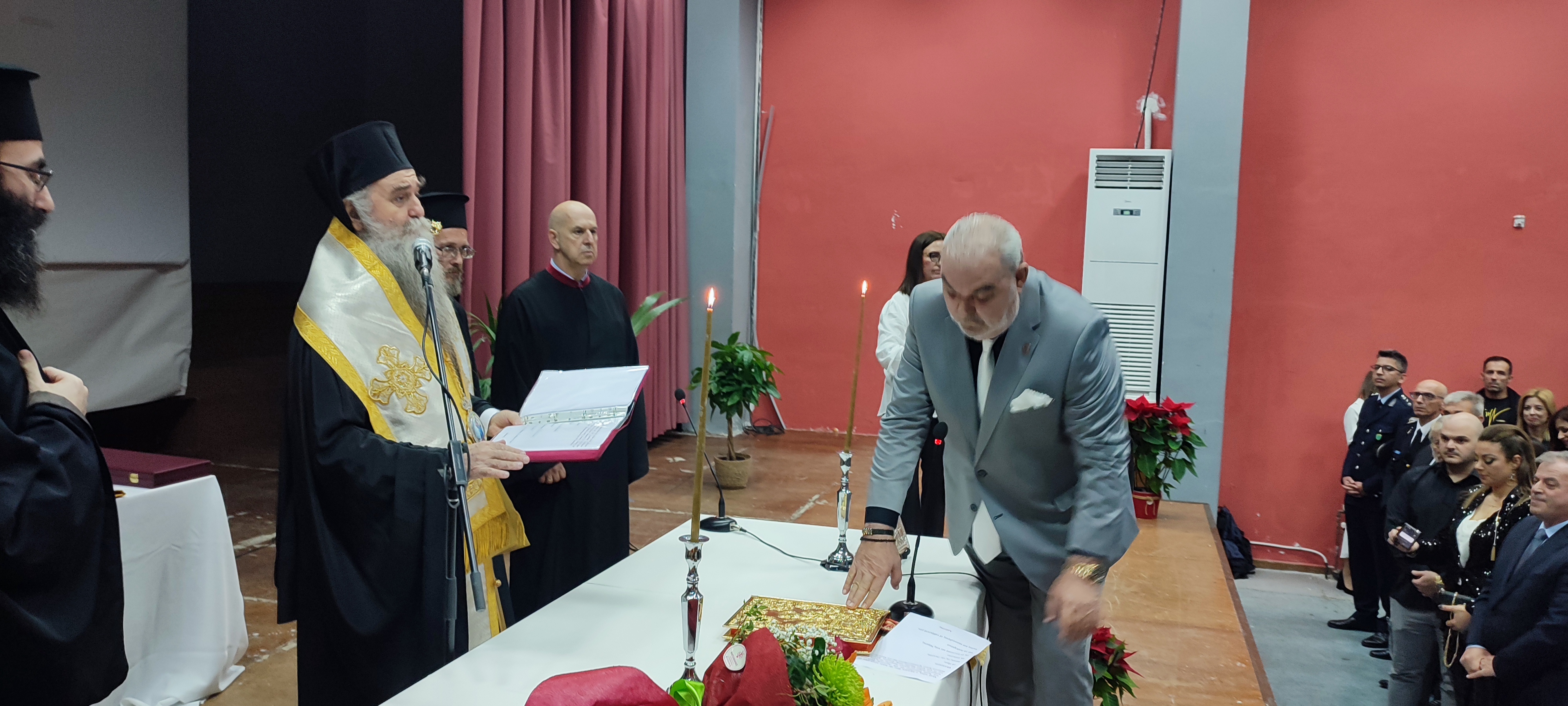 Η ορκωμοσία έγινε στη κατάμεστη από κόσμο αίθουσα «Αλέκος Παπαδόπουλος» στη Κυπαρισσία από το Μητροπολίτη Τριφυλίας και Ολυμπίας κ. Χρυσόστομο ο οποίος και ευχήθηκε για δύναμη και φωτισμό έτσι ότι σκέπτεστε και αποφασίζεται να είναι σύμφωνο με το θέλημα του Θεού και για το καλό του λαού που σας εμπιστεύτηκε με τη ψήφο του αυτή τη θέση, σημείωσε χαρακτηριστικά. «Να έχετε δύναμη και προπάντων υγεία σώματος που είναι αγαθό πολύτιμο και ψυχής που είναι αγαθό πολυτιμότερων ώστε να εκπλησώσεται στο ακέραιο τα καθήκοντα σας» κατέληξε ο κ. Χρυσόστομος.