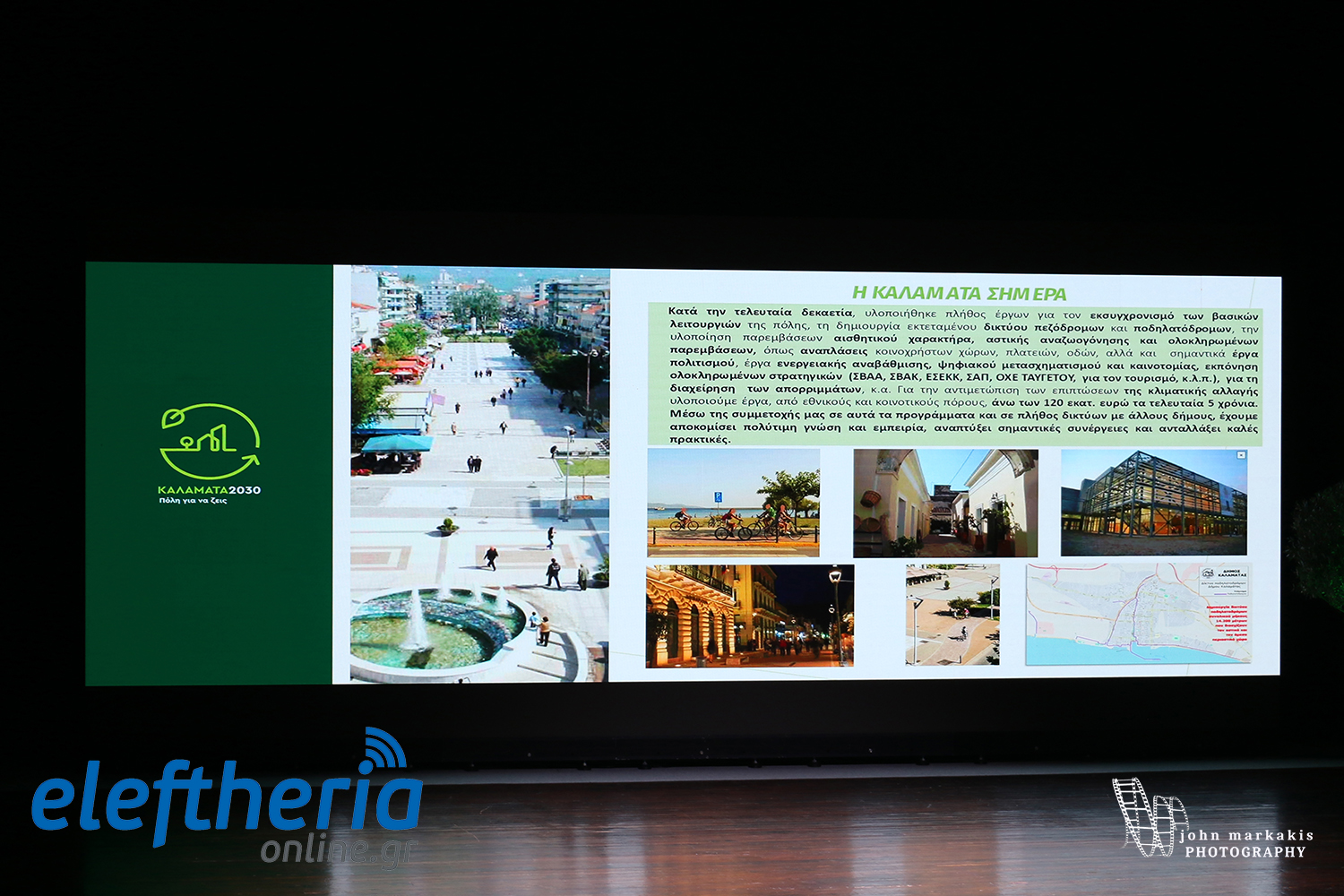 Ακόμα, παρουσιάστηκαν προγράμματα, όπως σε αυτό που μετέχουν η Καλαμάτα και η Σαντορίνη και το οποίο μετράει θαλάσσιους κινδύνους και κείνο της έξυπνης διαχείρισης απορριμμάτων, από το οποίο η Καλαμάτα θα πάρει 597.375 ευρώ.