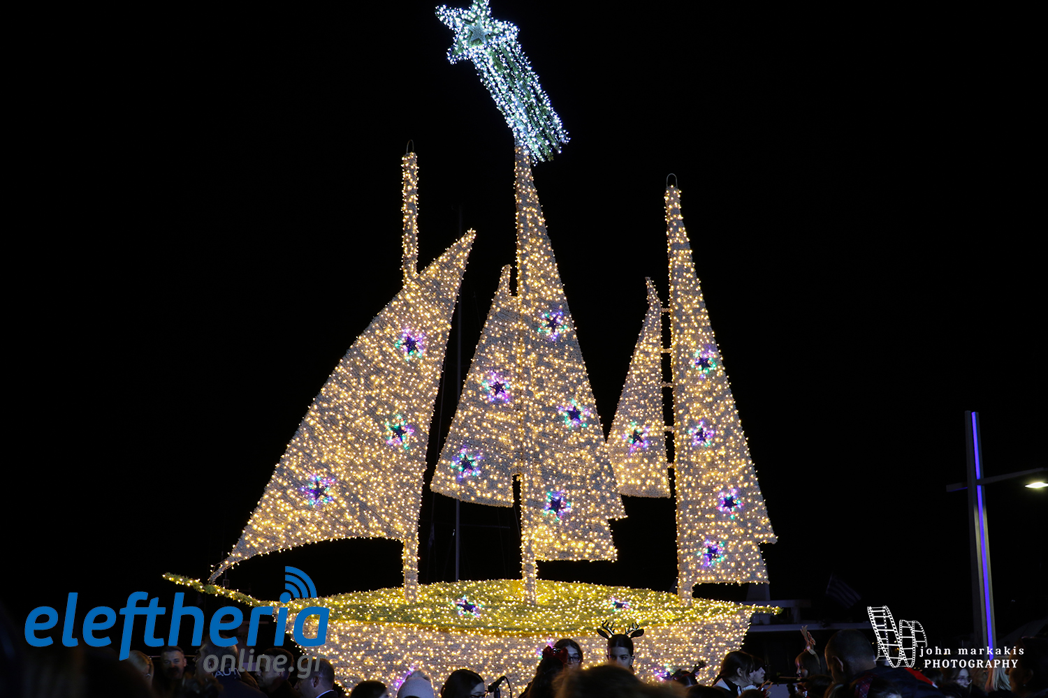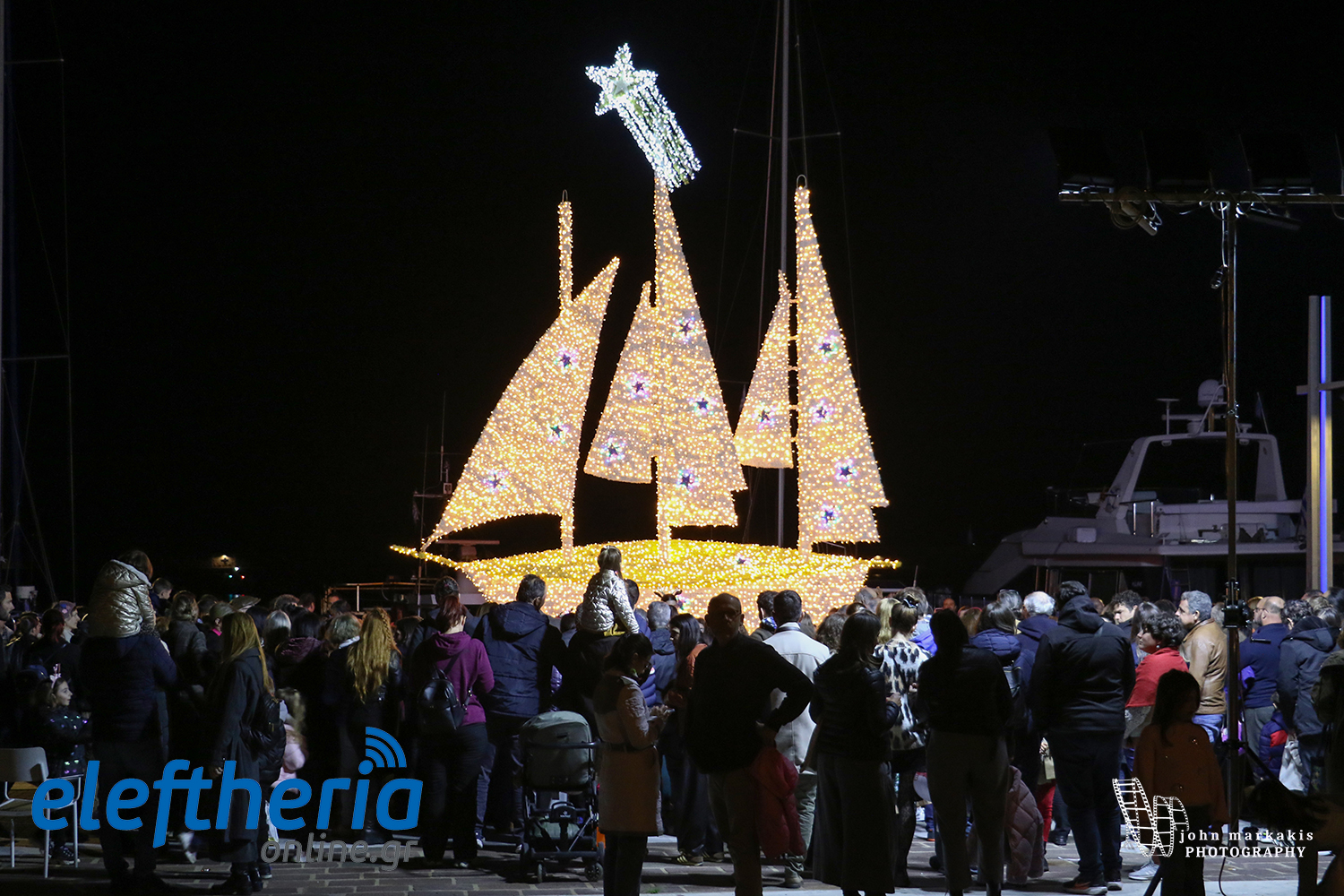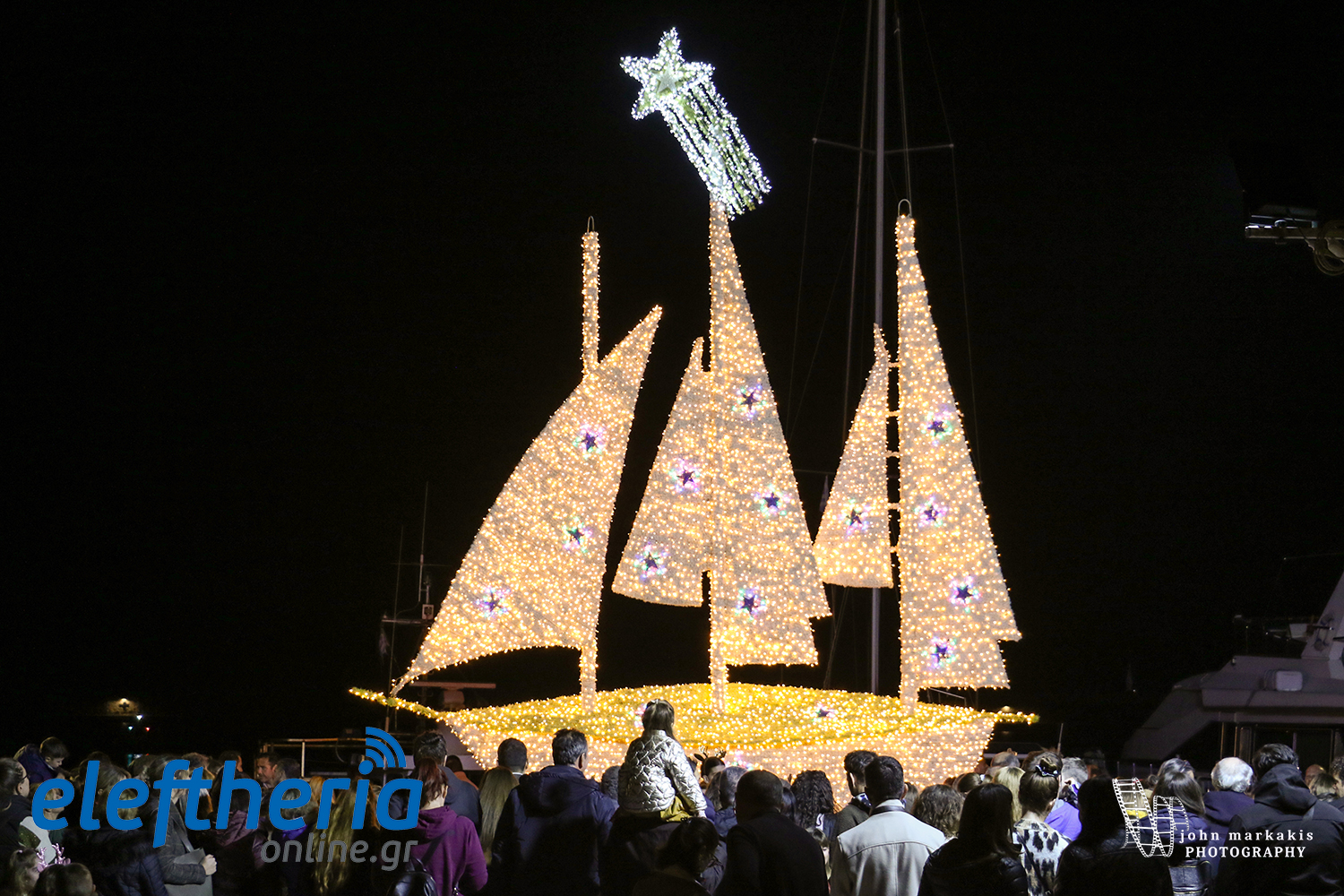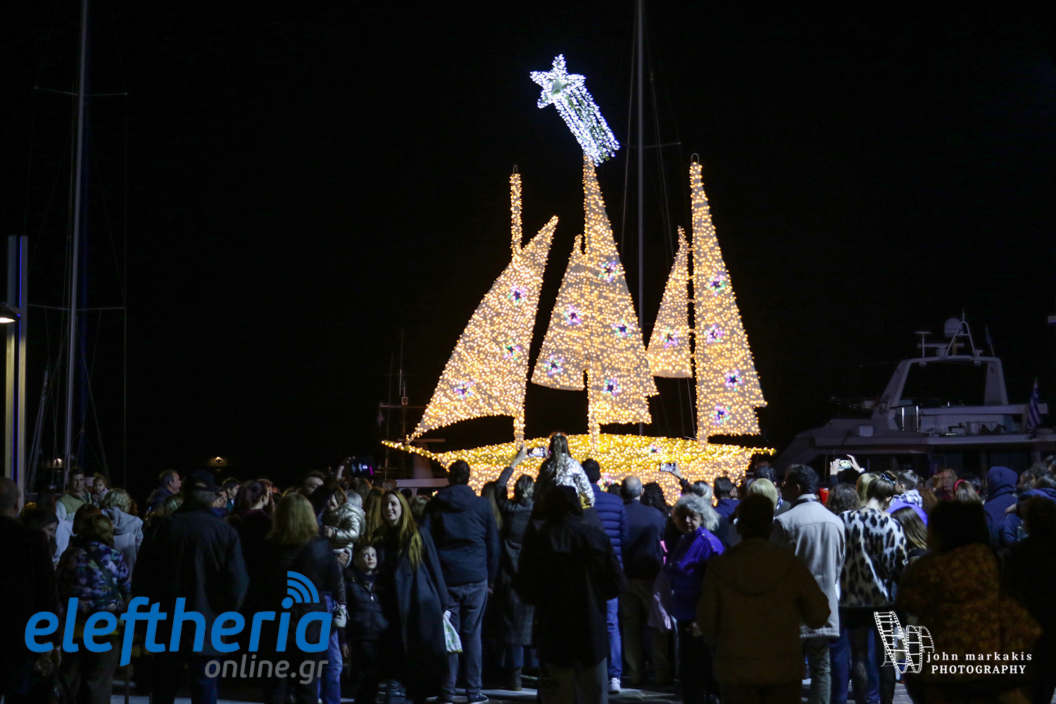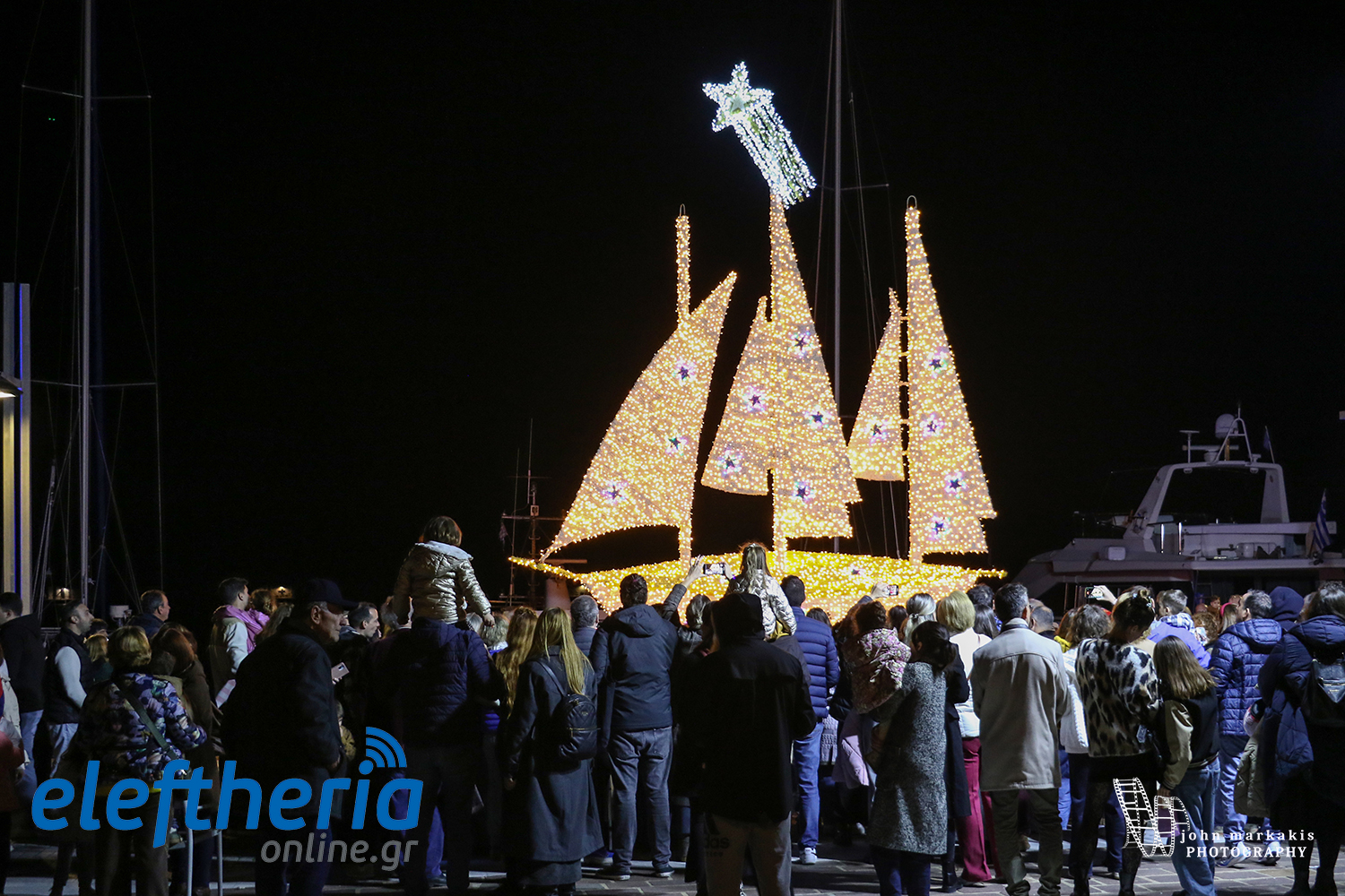 Καλαμάτα: Χριστουγεννιάτικο χρώμα στο λιμάνι - Φωταγωγήθηκε το καράβι (βίντεο+φωτο)