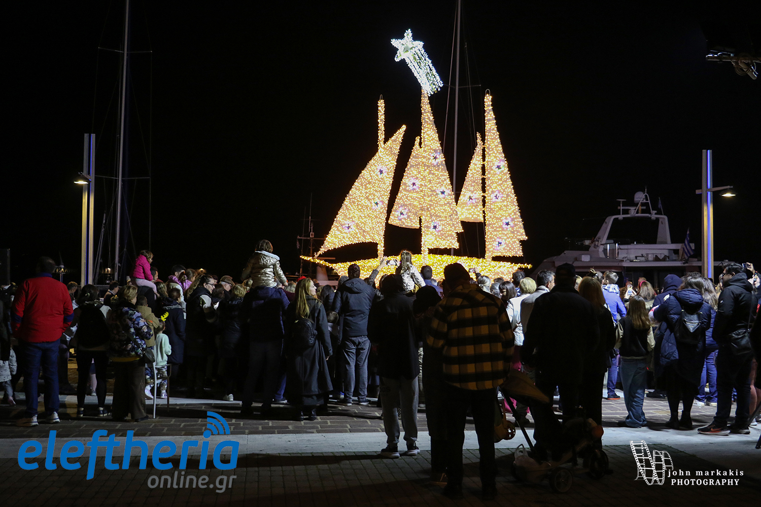 Παρουσία δεκάδων οικογενειών έγινε το απόγευμα της Κυριακής η φωταγώγηση του Χριστουγεννιάτικου καραβιού στο λιμάνι της Καλαμάτας, στην κεντρική προκυμαία.