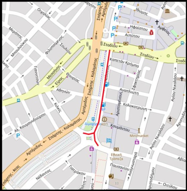 Κατά την εκτέλεση των εργασιών στην οδό Νέδοντος, θα υπάρξει τροποποίηση στις γραμμές του αστικού λεωφορείου ως εξής: Στη Γραμμή 1 του αστικού λεωφορείου, το δρομολόγιο με κατεύθυνση προς παραλία θα διέρχεται μέσω των οδών Αρτέμιδος – Κλαδά – Νέδοντος – Κροντήρη – Αριστομένους. Στη Γραμμή 2 του αστικού λεωφορείου, το δρομολόγιο με κατεύθυνση προς Νοσοκομείο θα διέρχεται μέσω των οδών 23ης Μαρτίου – Αρτέμιδος – Κλαδά – Νέδοντος – Κροντήρη – Αριστομένους. Στη Γραμμή 3 του αστικού λεωφορείου, το δρομολόγιο με κατεύθυνση προς ΟΣΕ θα διέρχεται μέσω των οδών Αρτέμιδος – Κλαδά – Νέδοντος – Κιλκίς – Αρτέμιδος. Στη Γραμμή 4 του αστικού λεωφορείου, το δρομολόγιο με κατεύθυνση προς Κορδία θα διέρχεται μέσω των οδών Μητρ. Μελετίου- Υπαπαντής – 23ης Μαρτίου – Αρτέμιδος – Κλαδά – Νέδοντος – Κροντήρη – Αριστομένους.