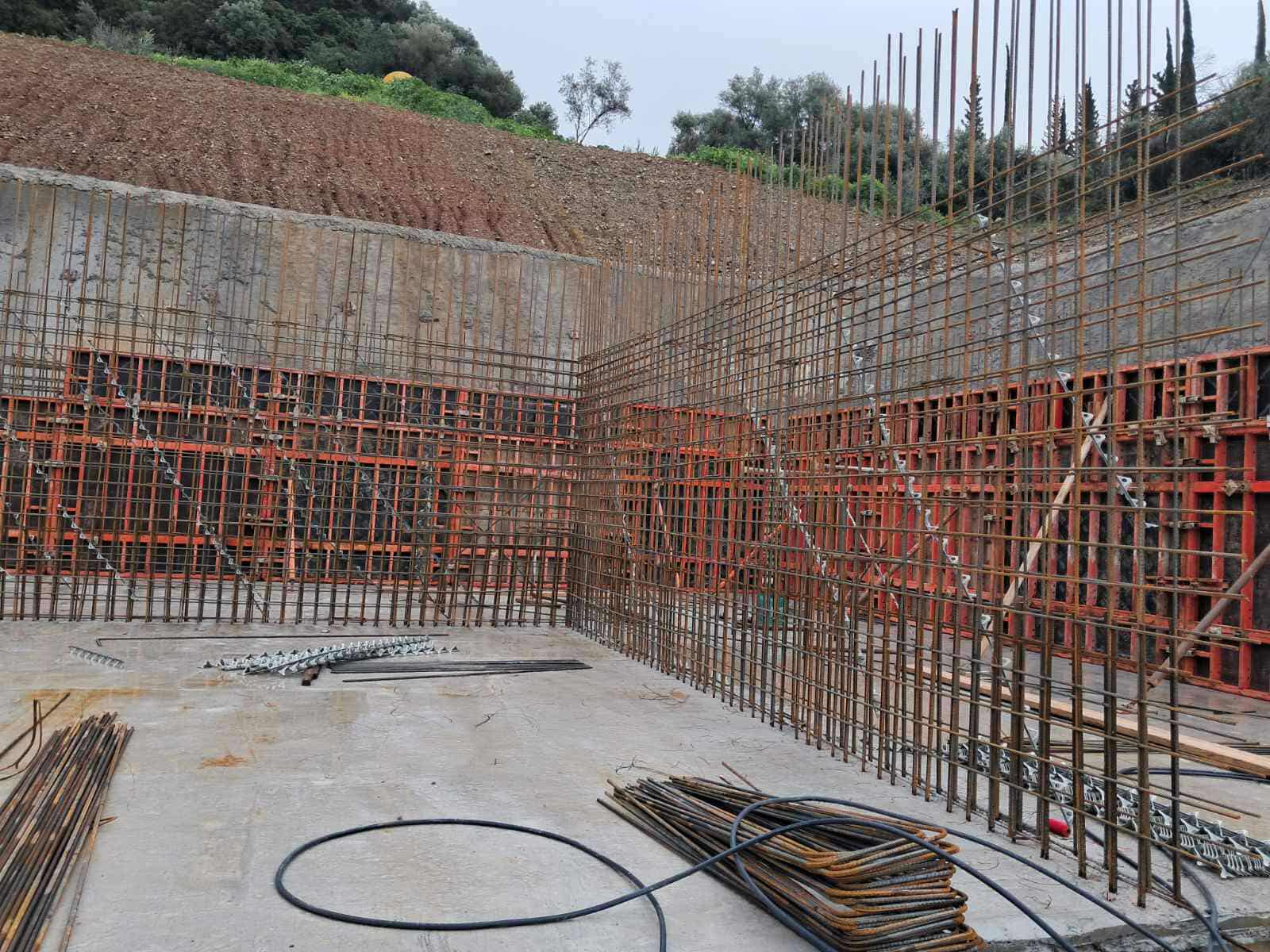 Οι εν εξελίξει εργασίες, σύμφωνα με ενημέρωση από τον πρόεδρο της ΔΕΥΑ Καλαμάτας, Ανδρέα Καραγιάννη, αφορούν τη σκυροδέτηση των τοιχείων της δεξαμενής.