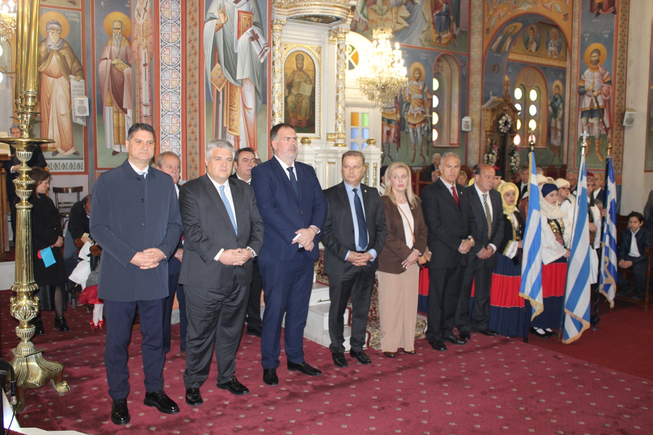 Στο Ηρώο της κεντρικής πλατείας, όπου τελέστηκε επιμνημόσυνη δέηση, κατέθεσαν στεφάνια ο δήμαρχος Μεσσήνης Γιώργος Αθανασόπουλος, ο εκπρόσωπος της Βουλής των Ελλήνων Βουλευτής Μεσσηνίας Μίλτος Χρυσομάλλης, ο εκπρόσωπος της Περιφέρειας Πελοποννήσου Αντιπεριφερειάρχης Αναστάσιος Αδαμόπουλος, ο εκπρόσωπος του Ανώτερου Διοικητή Φρουράς Καλαμάτας, αντισυνταγματάρχης Πεζικού Βασίλειος Παπαδέας, ο εκπρόσωπος των Σωμάτων Ασφαλείας Διοικητής του Α.Τ. Μεσσήνης Κωνσταντίνος Νικολετζέας, ο εκπρόσωπος του Λιμενικού Σώματος ανθυποπλοίαρχος Δημήτριος Ανδριανόπουλος, ο εκπρόσωπος του Πυροσβεστικού Σώματος Πυραγός Ιωάννης Κυρίτσης, η πρόεδρος της Δημοτικής Κοινότητας Μεσσήνης Δώρα Βαρανάκη, ο εκπρόσωπος του Συνδέσμου Εφέδρων Αξιωματικών Ν. Μεσσηνίας Νικόλαος Ρούτσης, αντιπροσωπεία μαθητών από το 1ο, 2ο και 3ο Δημοτικά Σχολεία, το 1ο και 2ο Γυμνάσιο Μεσσήνης, το 1ο Γενικό Λύκειο Μεσσήνης, το Επαγγελματικό Λύκειο Μεσσήνης, καθώς και εκπρόσωποι από τον Πολιτιστικό Εξωραϊστικό Σύλλογο Μεσσήνης, τον πολιτιστικό σύλλογο «Οι Φίλοι της Μεσσήνης», αντιπροσωπεία της Δημοτικής Φιλαρμονικής Μεσσήνης και αντιπροσωπεία του Δημοτικού Χορευτικού Ομίλου Μεσσήνης.