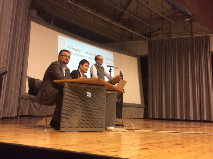 Χαιρετισμούς και μηνύματα στήριξης της υποψηφιότητας της Καλαμάτας έστειλαν ο υφυπουργός Εθνικής Αμυνας Γιάννης Λαμπρόπουλος και οι βουλευτές Δημήτρης Σαμπαζιώτης και Θανάσης Πετράκος, ενώ μεταξύ άλλων παρών στην εκδήλωση ήταν και ο πρώην δήμαρχος Καλαμάτας Παναγής Κουμάντος.