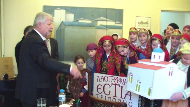 Πιο συγκεκριμένα, από το πρωί άνοιξαν οι πόρτες του παλαιού δημαρχείου και ο δήμαρχος μαζί με τη σύζυγό του και συνεργάτες του, υποδέχθηκαν τη χορωδία του Στρατού, τη Φιλαρμονική Τρίπολης, τη χορωδία του ΚΑΠΗ, χορωδίες από πολιτιστικά και χορευτικά συγκροτήματα, αντιπροσωπείες από τα σώματα Προσκοπισμού και οδηγισμού, από χορωδίες καθώς και πλήθος παιδικών παρεών όπου τραγούδησαν τα Κάλαντα από διάφορες περιοχές της Ελλάδας αλλά και Χριστουγεννιάτικα τραγούδια.
