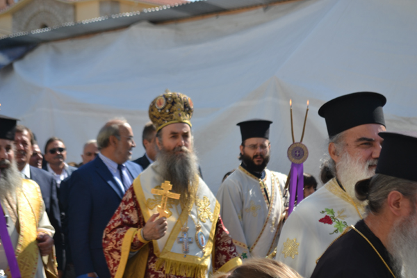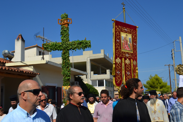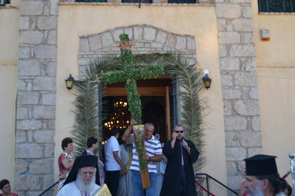 Χθες το πρωί στο ναό του Ευαγγελισμού της Θεοτόκου τελέστηκε αρχιερατική θεία λειτουργία από το μητροπολίτη Τριφυλίας και Ολυμπίας κ. Χρυσόστομο, ο οποίος στο κήρυγμά του μίλησε για το συμβολισμό του Σταυρού. Ακολούθησε λιτανεία με τον στολισμένο από βασιλικό σταυρό στους δρόμους γύρω από την εκκλησία, συνοδεία της Φιλαρμονικής Κυπαρισσίας, μαθητών, του ιερού κλήρου, των τοπικών αρχών και πλήθους πιστών. Κατά την επιστροφή στο ναό τελέστηκε δέηση και κατά την απόλυση ο κ. Χρυσόστομος μοίρασε σε όλους ένα κλαδί βασιλικού.