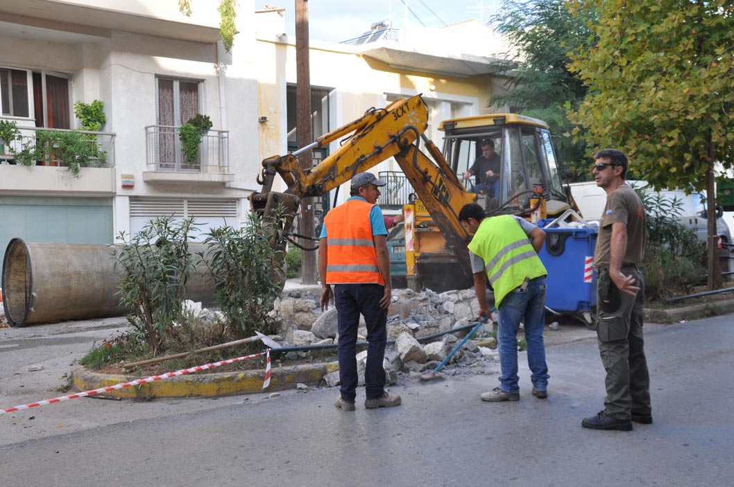 Για να γίνει η αμφιδρόμηση και στο συγκεκριμένο τμήμα χρειάστηκε να ξηλωθεί και ο υπόγειος κάδος, καθώς αναμένεται να επεκταθεί η νησίδα.