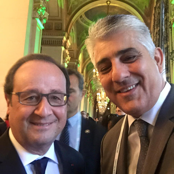 Από αριστερά, ο Πρόεδρος της Γαλλικής Δημοκρατίας Φρανσουά Ολάντ και ο δήμαρχος Πύλου-Νέστορος Δημήτριος Καφαντάρης.