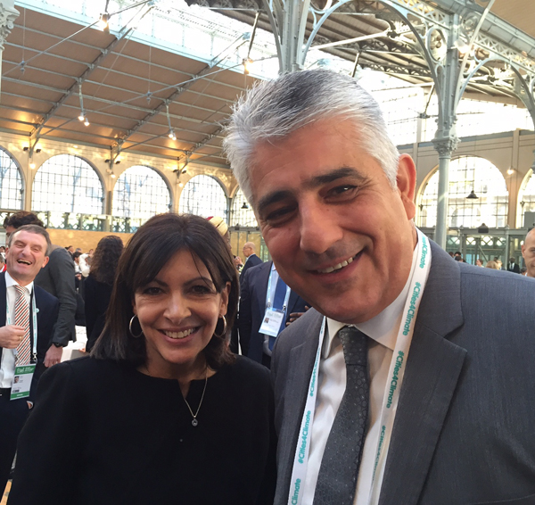 Από αριστερά η δήμαρχος του Παρισιού Αν Ινταλγκό και ο δήμαρχος Πύλου-Νέστορος Δημήτρης Καφαντάρης