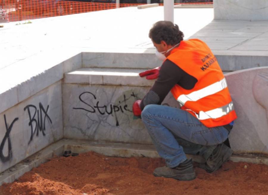 Σύμβαση ύψους 2.829 ευρώ με ΦΠΑ υπέγραψε χθες ο δήμαρχος Καλαμάτας Π. Νίκας για το σβήσιμο των γκράφιτι και των συνθημάτων με αμμοβολή, σε διάφορα σημεία της Καλαμάτας.