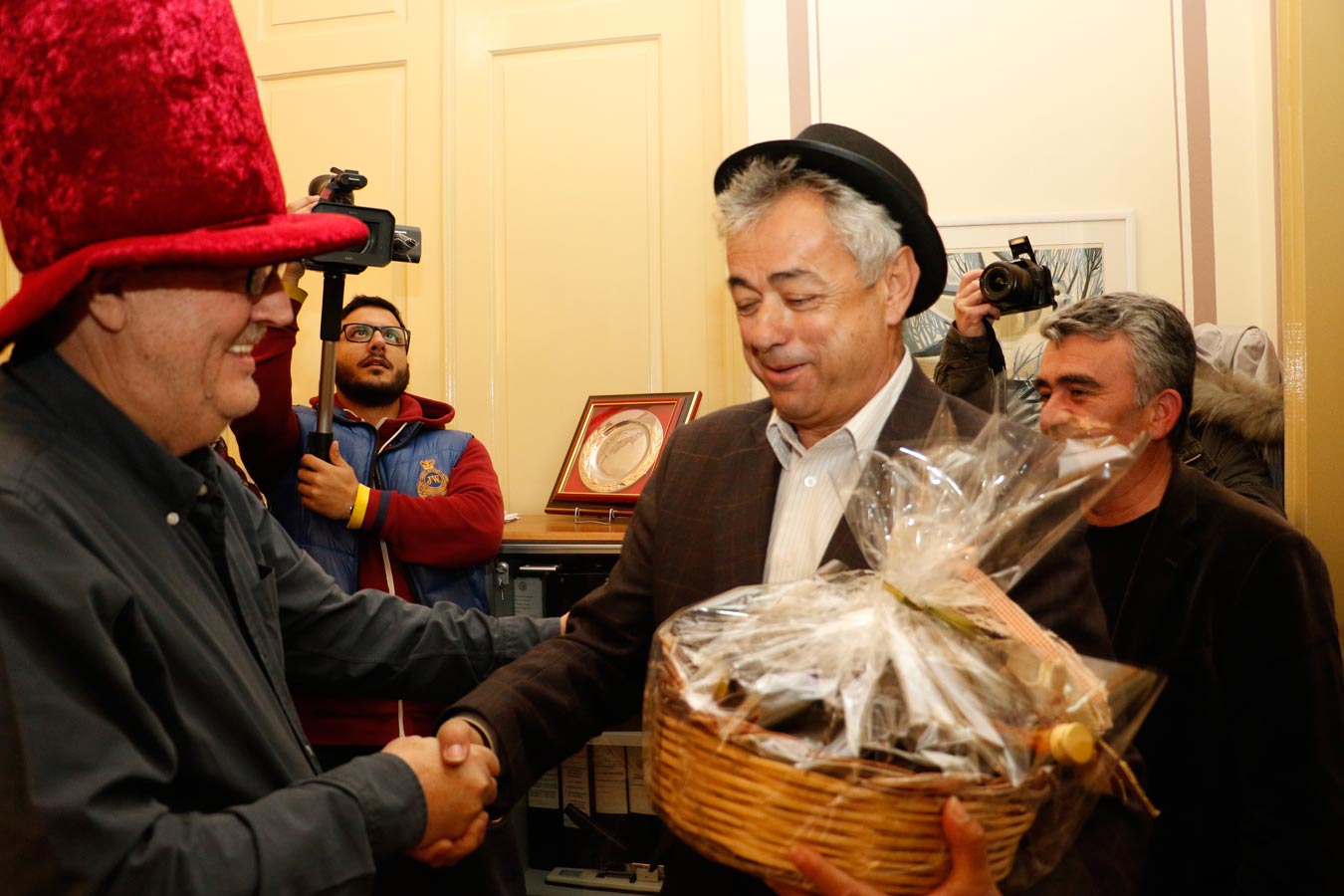 Αφού πρώτα έδωσαν το δικό τους χρώμα με μουσική και χορό στο κέντρο της πόλης, επισκέφτηκαν το δήμαρχο Παναγιώτη Νίκα. Εκείνος αφού αποδέχθηκε την πρόσκληση ζήτησε και από τους Νησιώτες να λάβουν μέρος στις καρναβαλικές εκδηλώσεις της Καλαμάτας, ενώ έστειλε και τα περαστικά του προς τον δήμαρχο Μεσσήνης Γιώργο Τσώνη, που αναρρώνει από την περιπέτεια υγείας που είχε.