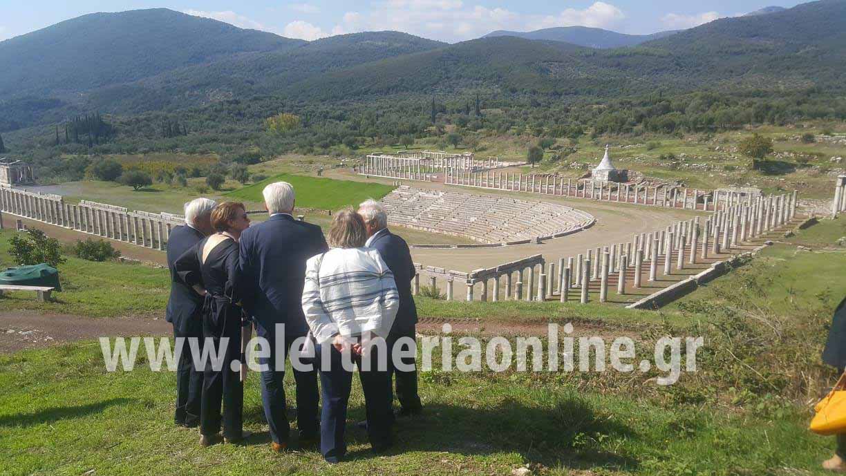 «Aξιότιμε κύριε Πρόεδρε, αγαπητέ φίλε Προκόπη, θέλω να εκφράσω τις θερμές ευχαριστίες μου ευχαριστίες. Είναι μεγάλη τιμή και χαρά που μας προσκάλεσες όχι μόνο για πολιτικές συνομιλίες αλλά και στην ιδιαίτερη πατρίδα σου για να την γνωρίσουμε. Δεν είναι η πρώτη φορά που επισκέπτομαι την Ελλάδα, επισκέπτομαι όμως για πρώτη φορά την Καλαμάτα και φυσικά χαίρομαι για την τόσο εξειδικευμένη ξενάγηση η οποία χαρακτηριζόταν και από προσωπικές αναμνήσεις. Είμαστε εντυπωσιασμένοι από τις ανασκαφές που γίνονται εδώ αν και δεν έχουν ακόμα ολοκληρωθεί, αλλά από το αμφιθέατρο αυτό που βλέπουμε. Μπορεί να φανταστεί κανείς πως ήταν σε όλο της το μεγαλείο η πρώην πρωτεύουσα η οποία ιδρύθηκε τον 4ο π.Χ αιώνα. Μπορεί μεν να μην τα είδαμε ακόμα όλα, μπορούμε όμως να αντιληφθούμε γιατί πολλοί Γερμανοί έχουν εγκατασταθεί μόνιμα εδώ στην περιοχή. Και πάλι θερμές ευχαριστίες που μας έδωσες την ευκαιρία να κάνουμε αυτήν την επίσκεψη».