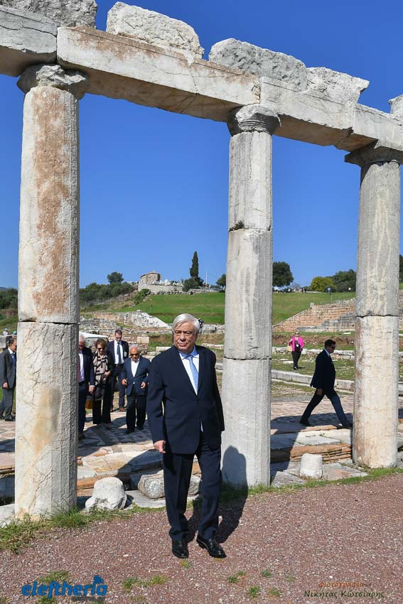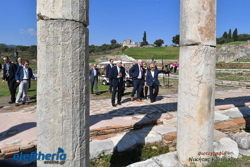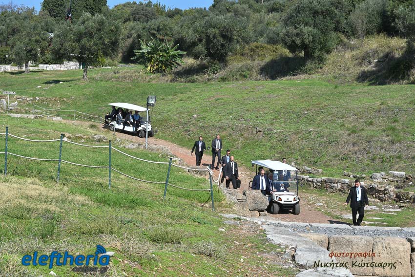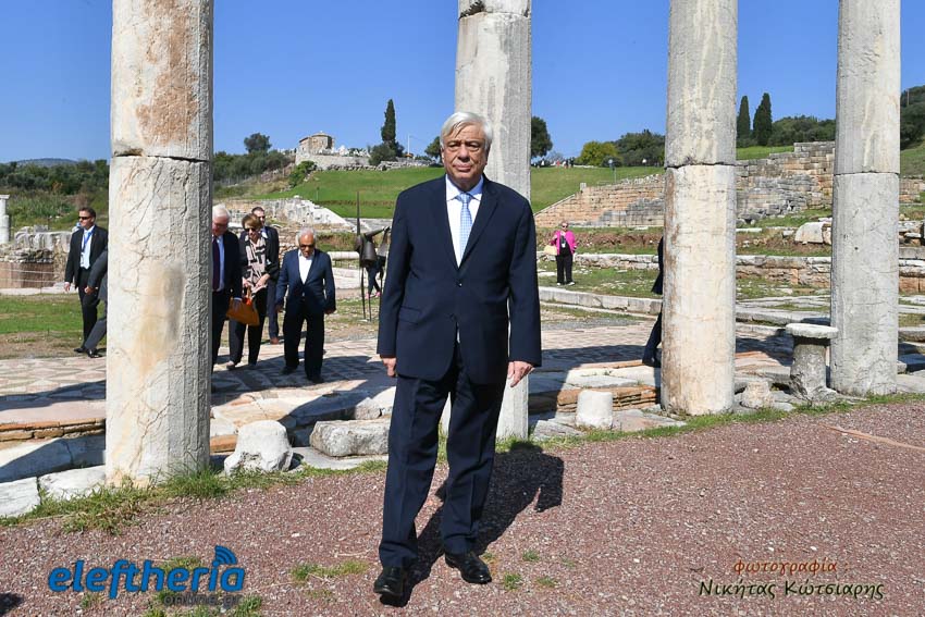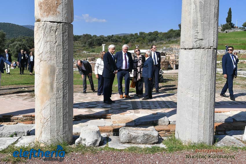 Την ξενάγηση των δύο Προέδρων έκανε ο καθηγητής Κλασικής Αρχαιολογίας, Πέτρος Θέμελης.