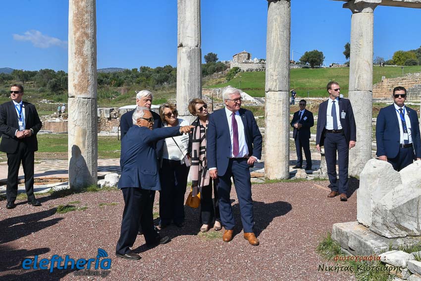 Την ξενάγηση έκανε ο καθηγητής Πέτρος Θέμελης, ενώ παρούσες ήταν οι σύζυγοί των δύο Προέδρων Ελκε Μπουντενμπέντερ και Βλασία Παυλοπούλου αντίστοιχα.