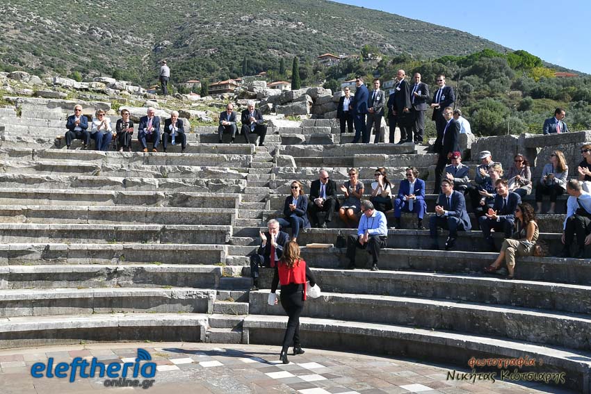 «Κύριε Πρόεδρε, αγαπημένε φίλε, σας υποδέχομαι όχι μόνο στην πατρίδα μου, αλλά σε ένα από τα κέντρα του αρχαίου ελληνικού πολιτισμού, που είναι μεν μεταγενέστερο από άλλα, όμως δεν παύει να αποπνέει το αρχαίο ελληνικό πνεύμα, την τέχνη από τη μία πλευρά, και τη δημοκρατία την άλλη. Γιατί τα αρχαία θέατρα είναι χώροι όπου βεβαίως η τέχνη, όχι μόνο δημιουργήθηκε, αλλά διδάχθηκε, ενώ είναι και χώροι όπου δημοκρατικές διαδικασίες εξελίχθηκαν για να έχουμε σήμερα αυτή τη δημοκρατία, την οποία οφείλουμε να υπερασπιστούμε, ιδίως εμείς οι Ευρωπαίοι. Χαίρομαι που είμαστε εδώ, δείχνοντας από πού ξεκινάει η μεγάλη μας ευρωπαϊκή οικογένεια, από πού ξεκινάει ο πρώτος πυλώνας του ευρωπαϊκού πολιτισμού, από εδώ την Ελλάδα.