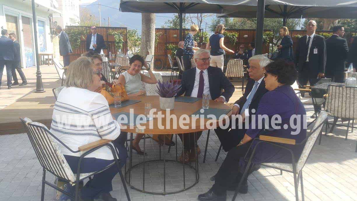Μετά την ξενάγηση στην Αρχαία Μεσσήνη ο κ. Στάινμαϊερ μαζί με τον Έλληνα Πρόεδρο και τις συζύγους τους κάθισαν για έναν σύντομο καφέ στο "Πανελλήνιο".
