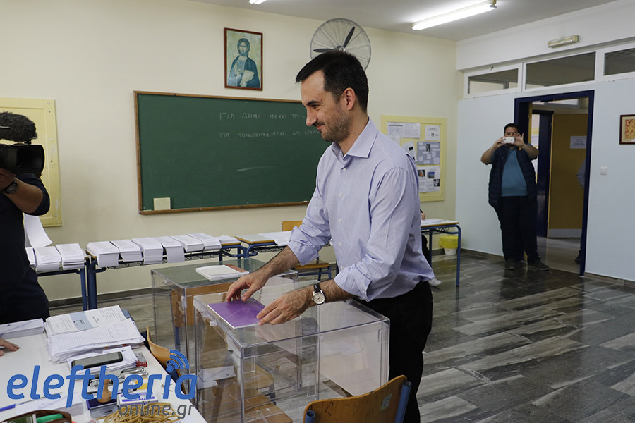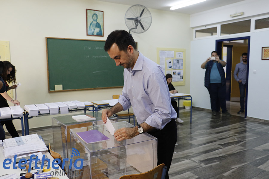 Ο κ. Χαρίτσης προσήλθε στο εκλογικό κέντρο στις 7 το πρωί και ψήφισε για τις ευρωεκλογές και τις περιφερειακές εκλογές στο 135 Α εκλογικό τμήμα και για τις δημοτικές και τις κοινοτικές στο 135 Β.