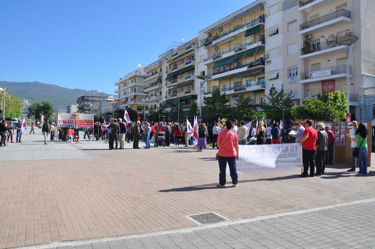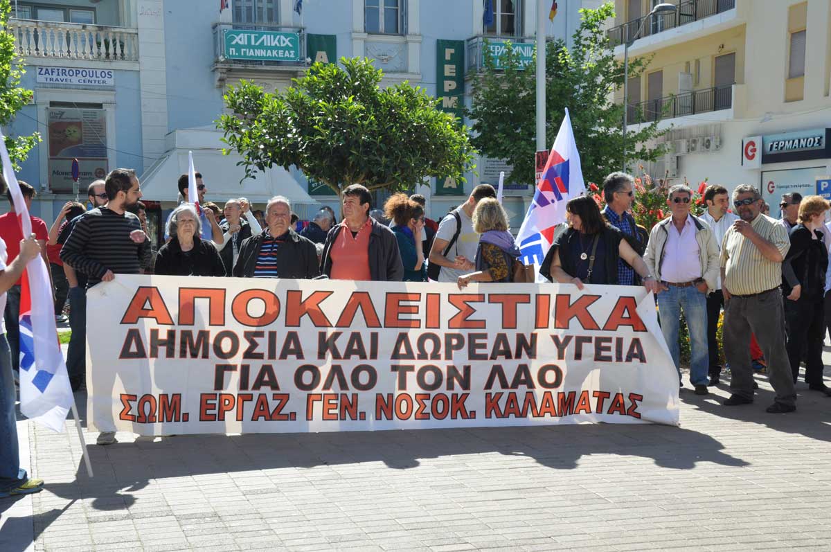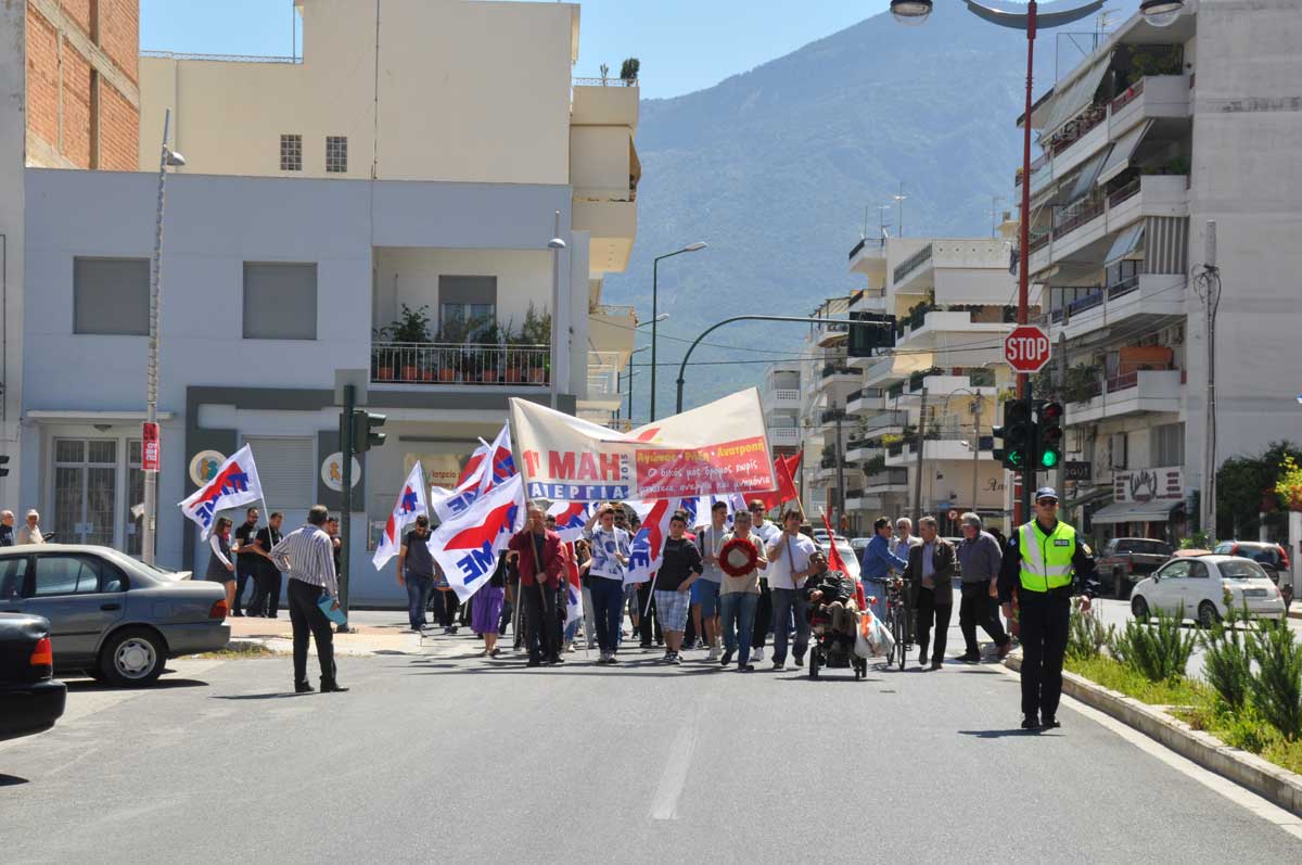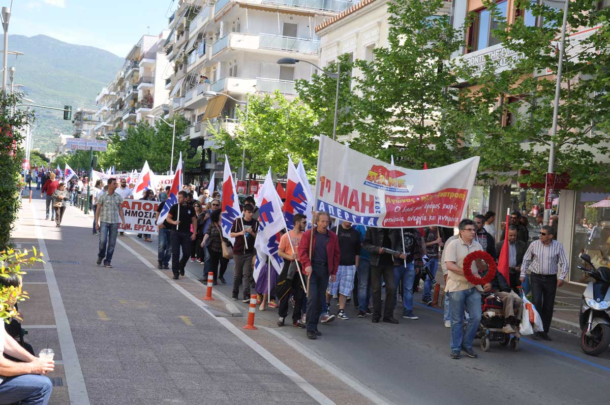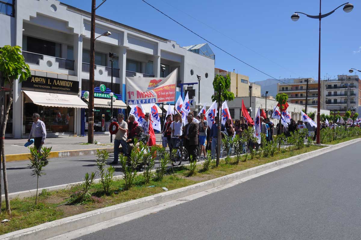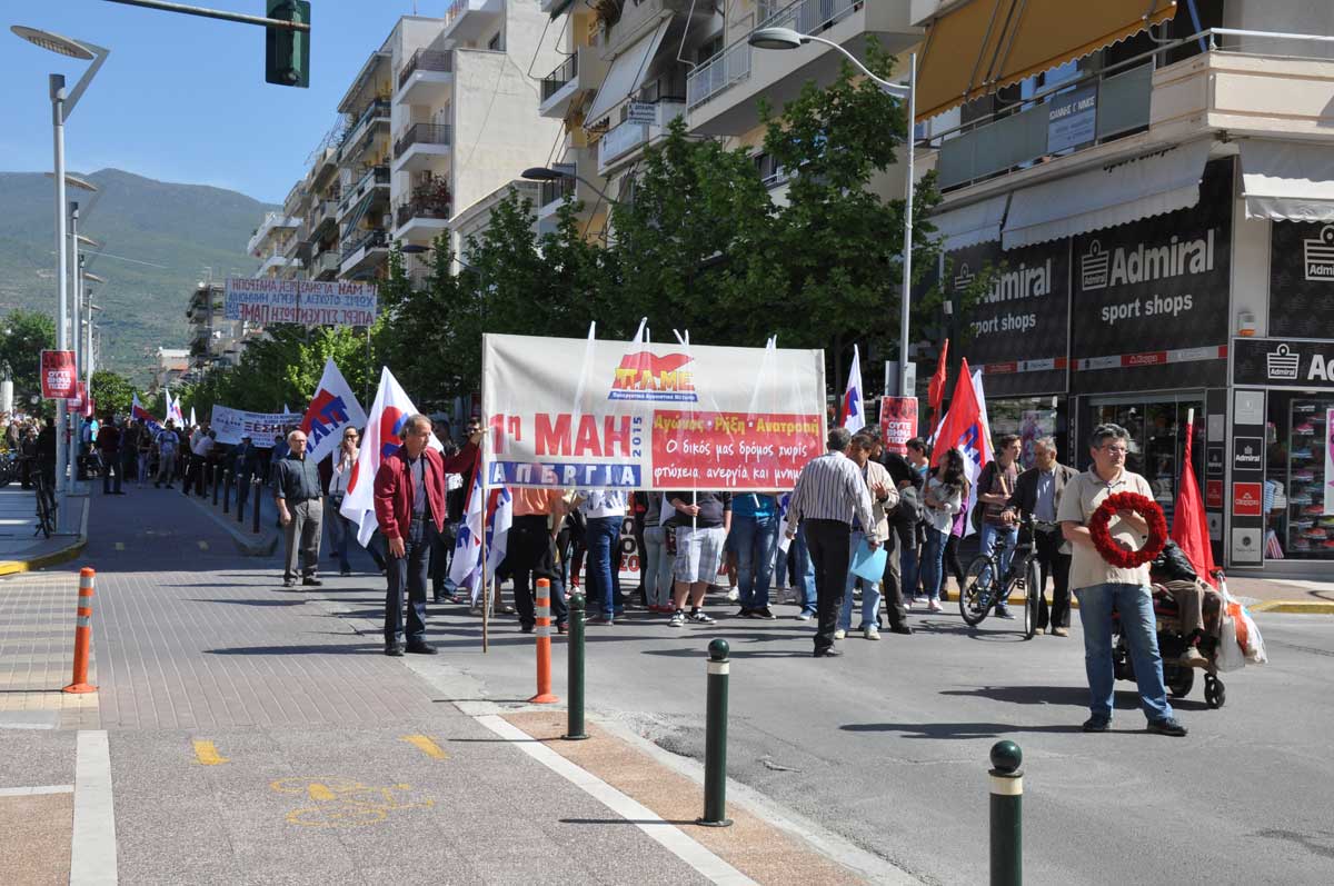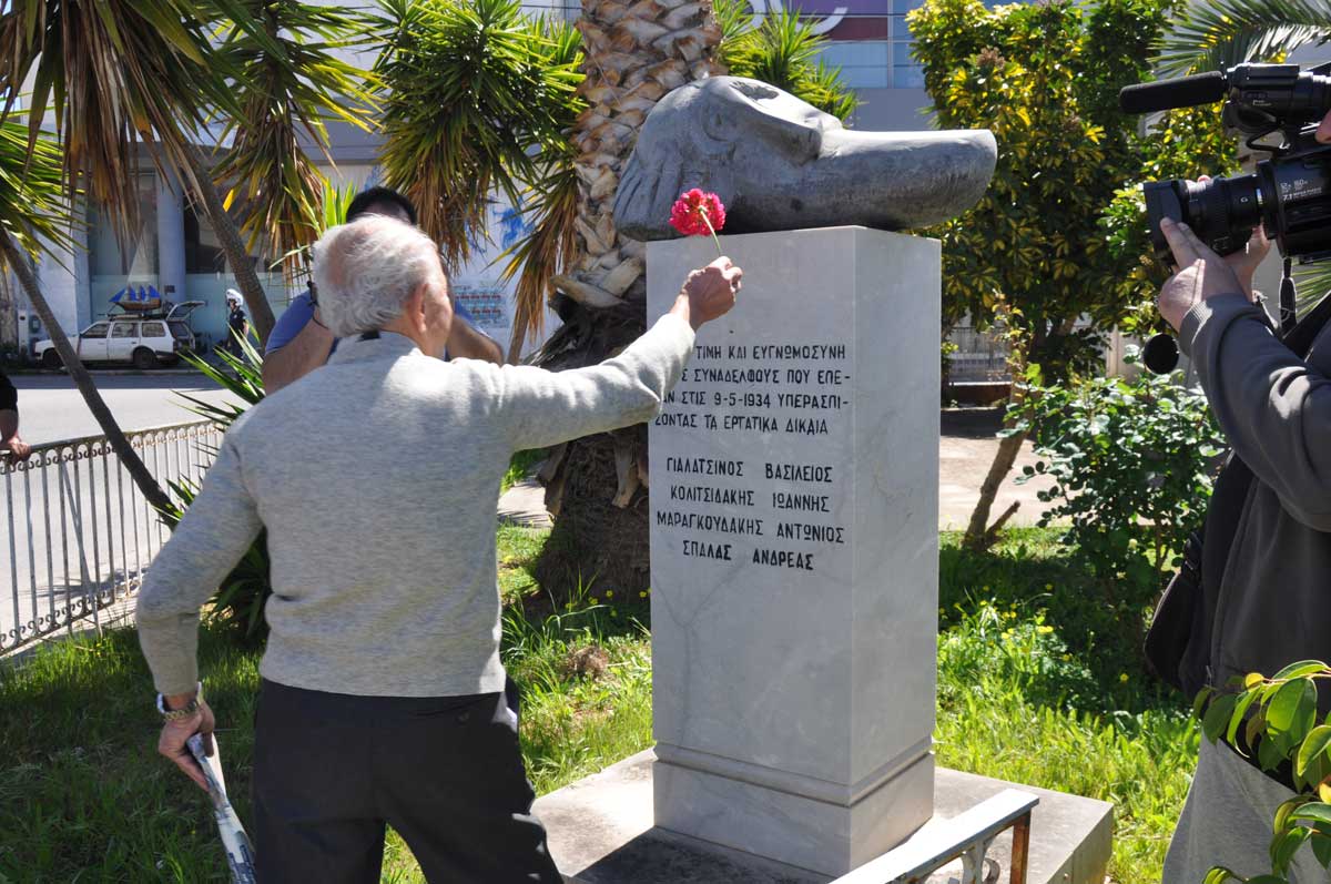 Στους συγκεντρωμένους απευθύνθηκαν, ο Μάριος Μούντανος από την Επιτροπή Ανέργων -ο οποίος και κατέθεσε, αργότερα, το στεφάνι στο μνημείο των λιμενεργατών-, ο ειδικευόμενος γιατρός στο Νοσοκομείο Καλαμάτας Γιώργος Φερνετίνος και ο επικεφαλής της Γραμματείας Μεσσηνίας του ΠΑΜΕ Παναγιώτης Κουφαλάκος, πρόεδρος του σωματείου εργαζομένων στη ΔΕΥΑΚ, ενώ η Βάσια Αντωναροπούλου ανέγνωσε την απολογία του Αύγουστου Σπάις, του εργάτη που μαζί με άλλους συναδέλφους του απαγχονίστηκε για τα γεγονότα που εξελίχθηκαν στην εργατική κινητοποίηση του Σικάγου το 1886.