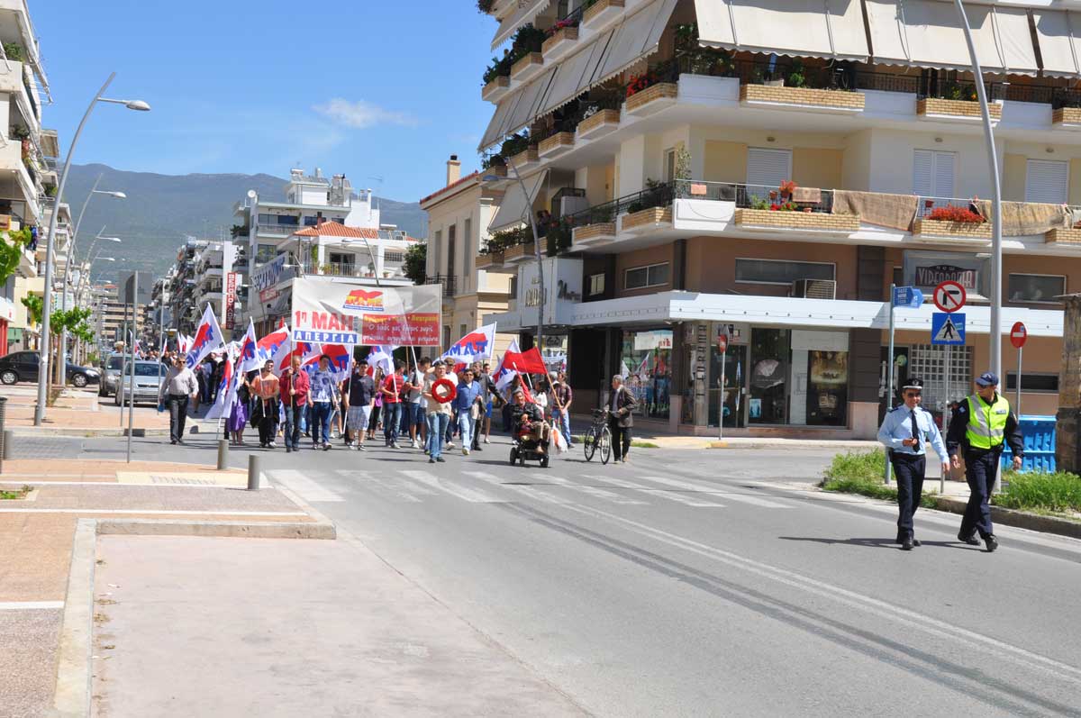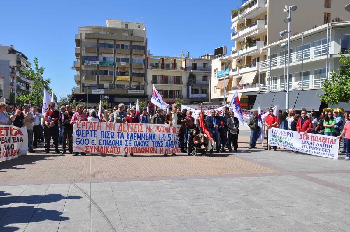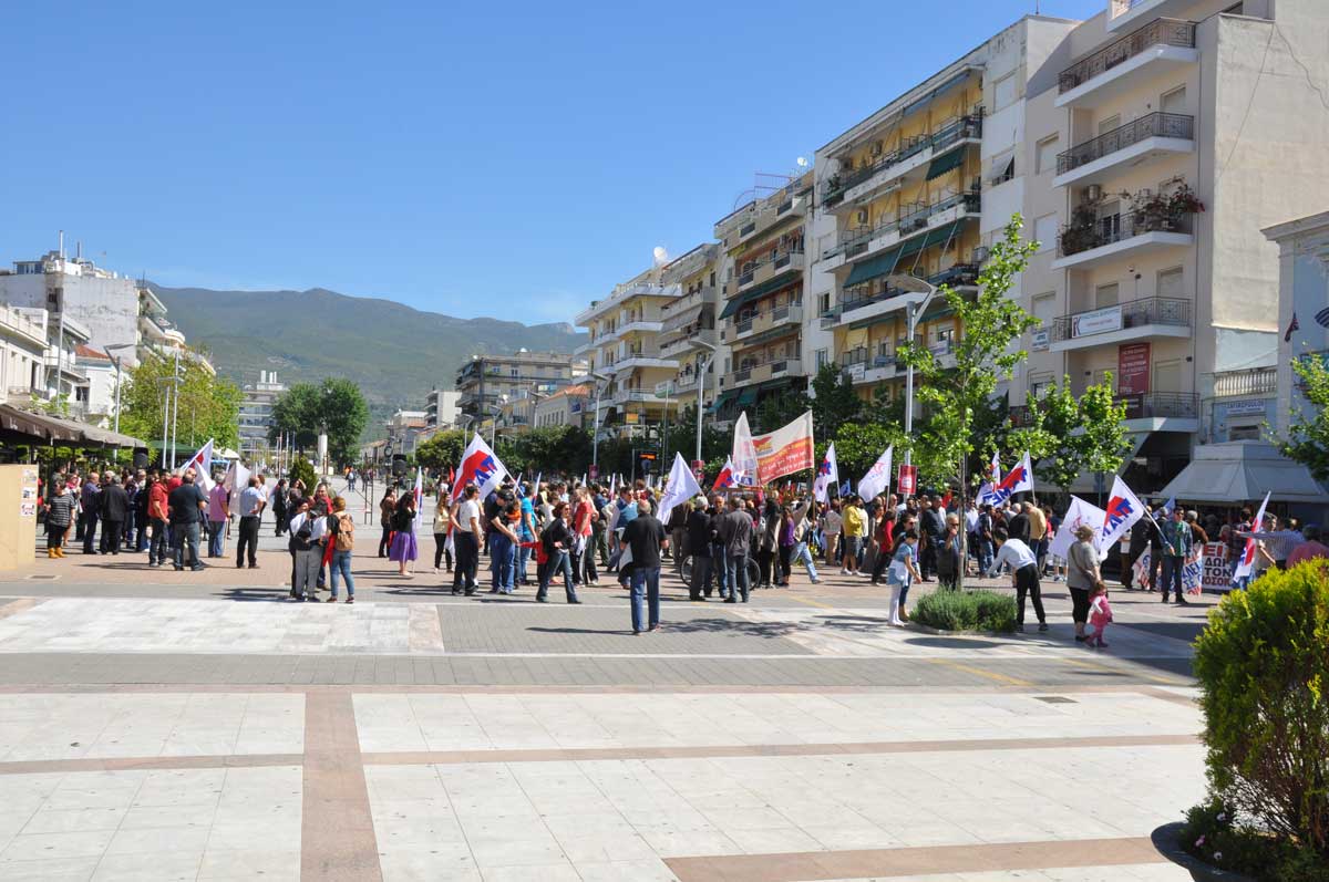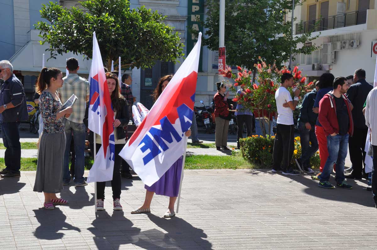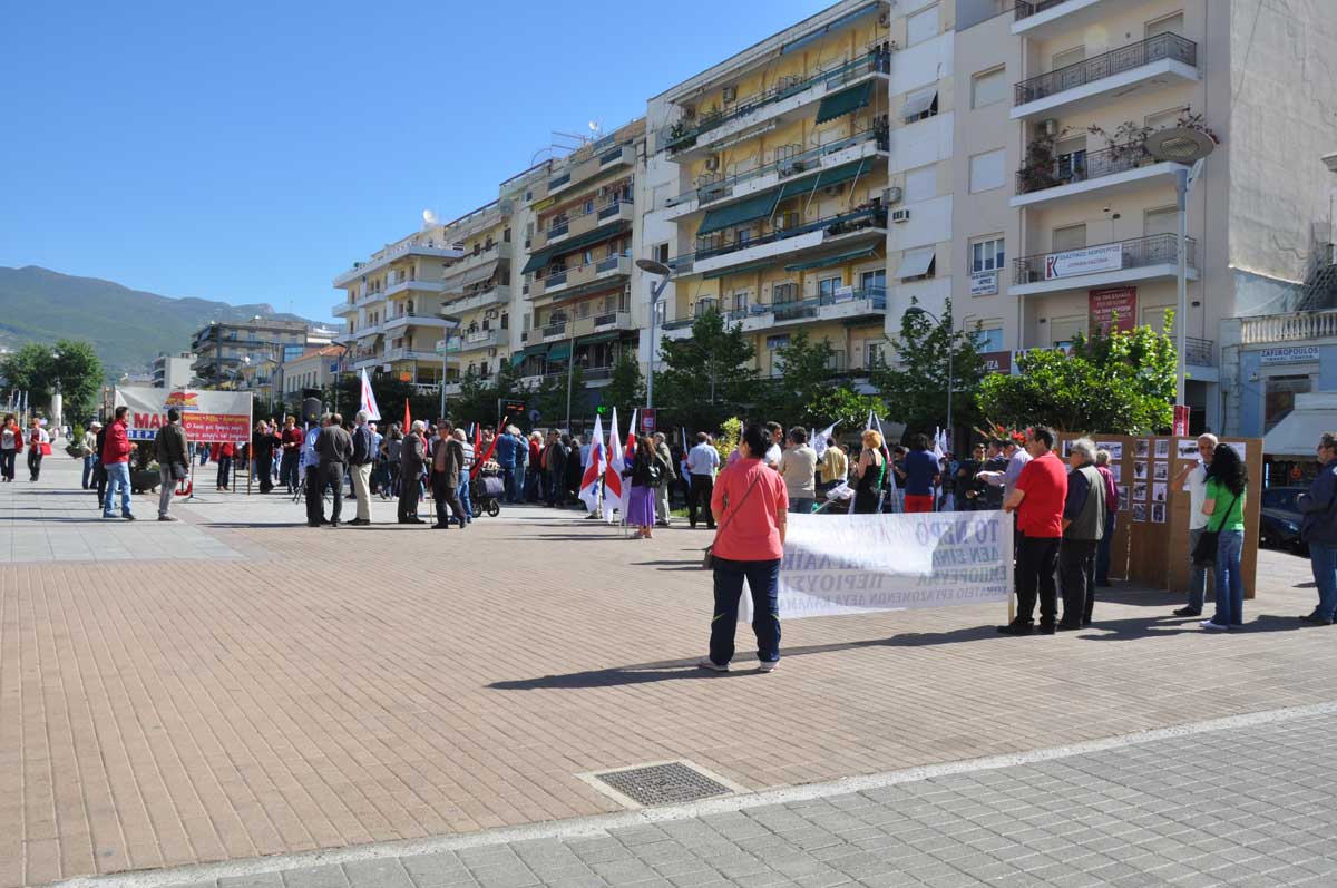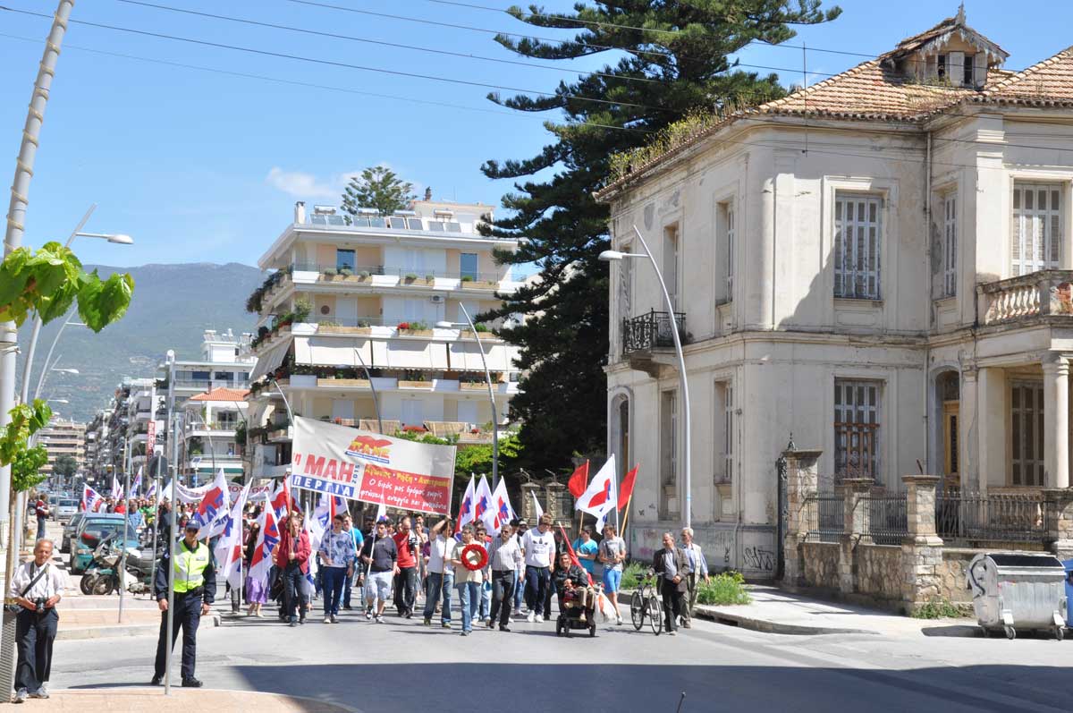Στους συγκεντρωμένους απευθύνθηκαν, ο Μάριος Μούντανος από την Επιτροπή Ανέργων -ο οποίος και κατέθεσε, αργότερα, το στεφάνι στο μνημείο των λιμενεργατών-, ο ειδικευόμενος γιατρός στο Νοσοκομείο Καλαμάτας Γιώργος Φερνετίνος και ο επικεφαλής της Γραμματείας Μεσσηνίας του ΠΑΜΕ Παναγιώτης Κουφαλάκος, πρόεδρος του σωματείου εργαζομένων στη ΔΕΥΑΚ, ενώ η Βάσια Αντωναροπούλου ανέγνωσε την απολογία του Αύγουστου Σπάις, του εργάτη που μαζί με άλλους συναδέλφους του απαγχονίστηκε για τα γεγονότα που εξελίχθηκαν στην εργατική κινητοποίηση του Σικάγου το 1886.
