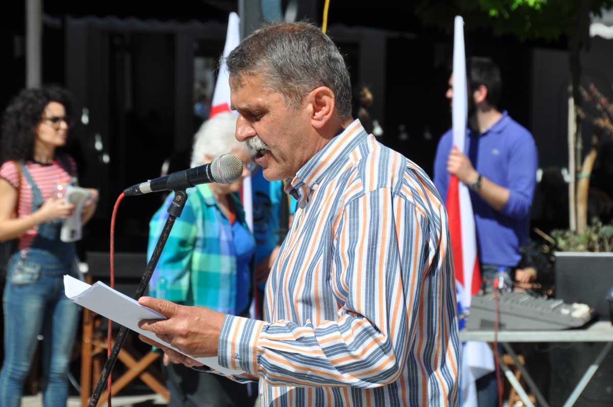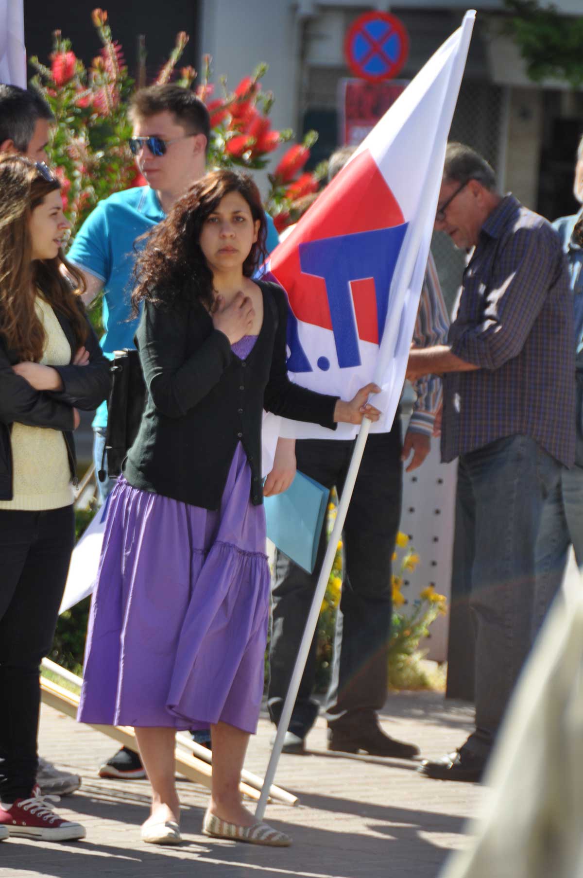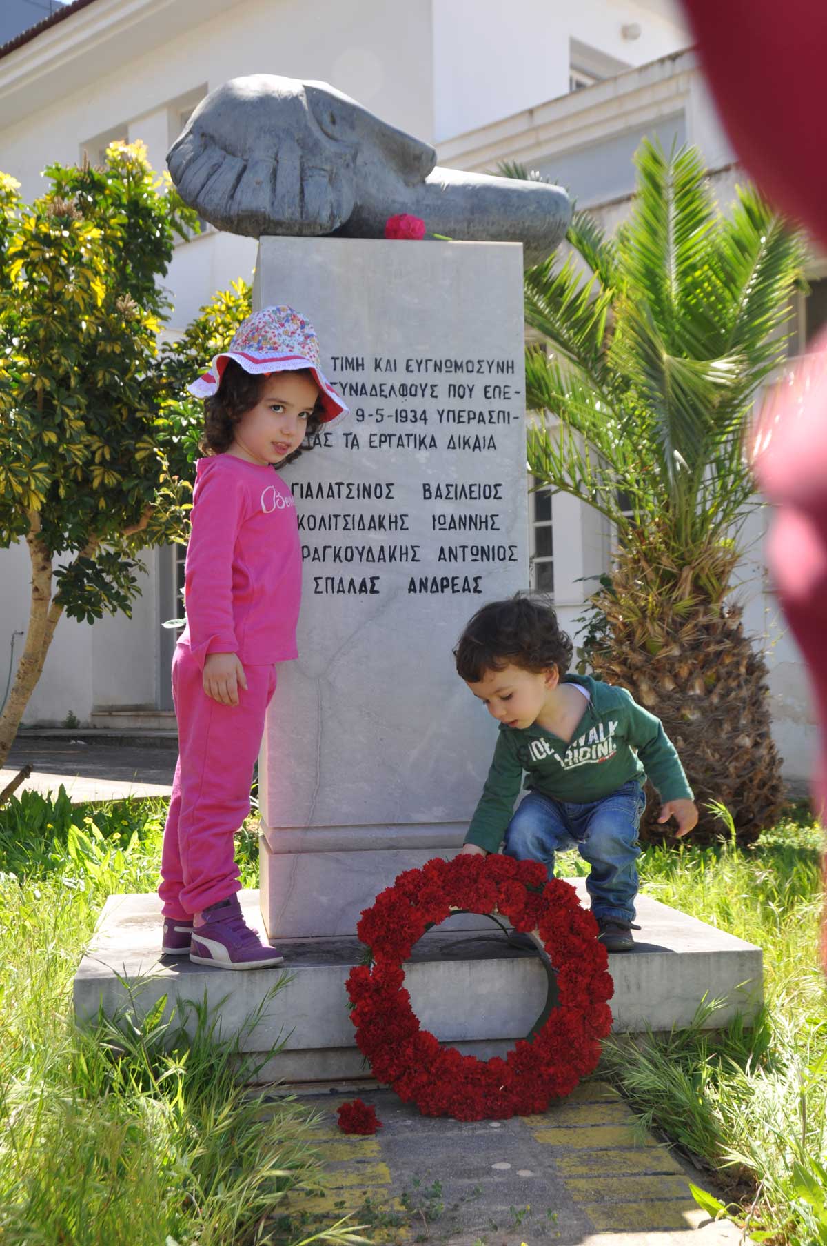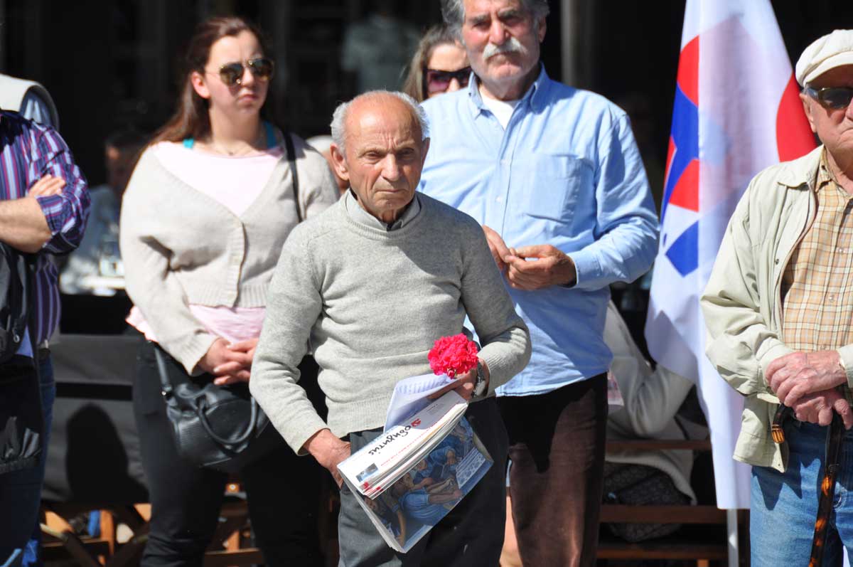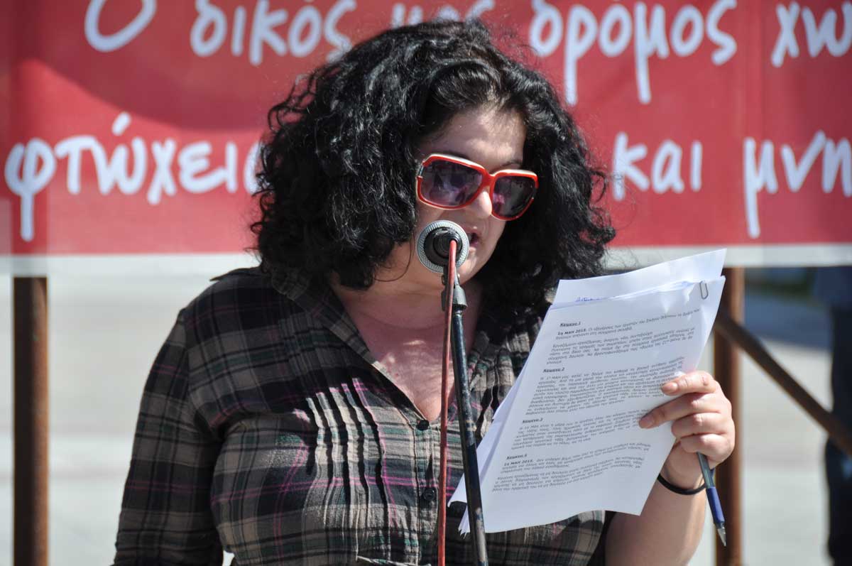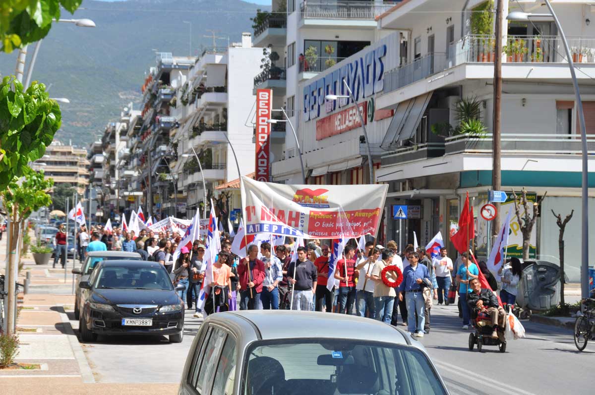 Στους συγκεντρωμένους απευθύνθηκαν, ο Μάριος Μούντανος από την Επιτροπή Ανέργων -ο οποίος και κατέθεσε, αργότερα, το στεφάνι στο μνημείο των λιμενεργατών-, ο ειδικευόμενος γιατρός στο Νοσοκομείο Καλαμάτας Γιώργος Φερνετίνος και ο επικεφαλής της Γραμματείας Μεσσηνίας του ΠΑΜΕ Παναγιώτης Κουφαλάκος, πρόεδρος του σωματείου εργαζομένων στη ΔΕΥΑΚ, ενώ η Βάσια Αντωναροπούλου ανέγνωσε την απολογία του Αύγουστου Σπάις, του εργάτη που μαζί με άλλους συναδέλφους του απαγχονίστηκε για τα γεγονότα που εξελίχθηκαν στην εργατική κινητοποίηση του Σικάγου το 1886.