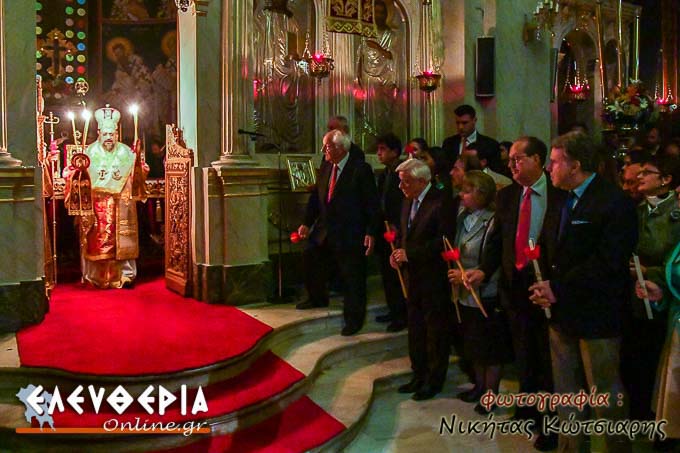 Στον μητροπολιτικό ναό της Υπαπαντής το παρών έδωσαν ο Πρόεδρος της Δημοκρατίας Προκόπης Παυλόπουλος, ο υπουργός Εργασίας Γιώργος Κατρούγκαλος, οι βουλευτές Γιώτα Κοζομπόλη και Πέτρος Κωνσταντινέας, η αντιπεριφερειάρχες Μεσσηνίας Ελένη Αλειφέρη και Πελοποννήσου Περικλής Μαντάς, ο δήμαρχος Καλαμάτας Παναγιώτης Νίκας και η πρόεδρος του Δημοτικού Συμβουλίου Μαρία Οικονομάκου.