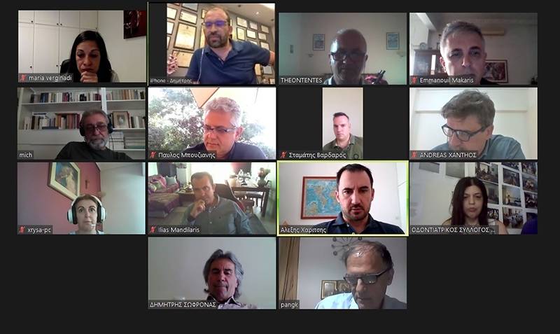 Στην τηλεδιάσκεψη συμμετείχαν ο Παναγιώτης Κατσαφάδος, διευθυντής Κέντρου Υγείας Καλαμάτας, ο Θοδωρής Τέντες, διοικητικός διευθυντής Νοσοκομείου Κυπαρισσίας, ο Δημήτρης Τζωρτζίνης, πρόεδρος του Ιατρικού Συλλόγου Μεσσηνίας, ο Ηλίας Μανδηλάρης, πρόεδρος του Συλλόγου Ιατρών Κέντρων Υγείας Μεσσηνίας, η Χρύσα Μάλλιου, μέλος ΔΣ Σωματείου Ειδικευμένων Ιατρών ΕΣΥ Μεσσηνίας, η Τζίνα Θεοδωροπούλου, ο Αγγελος Τσορφολιάς και ο Εμμανουήλ Ανσουριάν, πρόεδρος, ταμίας και μέλος ΔΣ του Οδοντιατρικού Συλλόγου Μεσσηνίας αντίστοιχα, ο Παύλος Μπουζιάνης, αντιπρόεδρος Φαρμακευτικού Συλλόγου Μεσσηνίας, και ο Μιχάλης Μπορνόβας, πρόεδρος του Συλλόγου Φίλων του Δικτύου Ιατρείων Κοινωνικής Αλληλεγγύης.