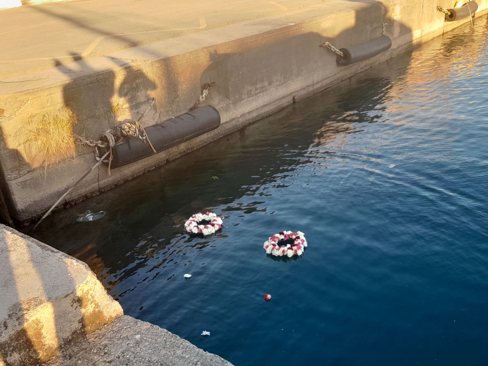 Ακολούθησε συμβολική κατάθεση στεφάνων στα νερά του λιμανιού της Καλαμάτας και ενός λεπτού σιγή.
