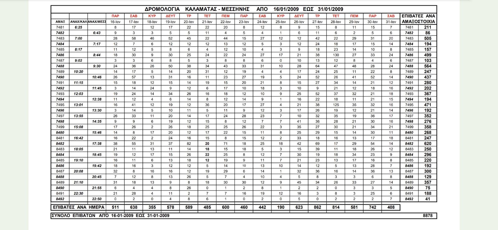 Τα επίσημα στοιχεία από τη λειτουργία του 2009 (επισυναπτόμενος πίνακας) δείχνουν 8.878 εισιτήρια σε μόλις 15 ημέρες, δηλαδή πάνω από 590 επιβάτες ημερησίως, αποδεικνύοντας τη ζήτηση και τη βιωσιμότητα της γραμμής.