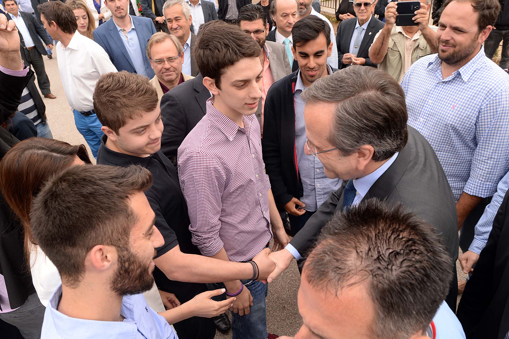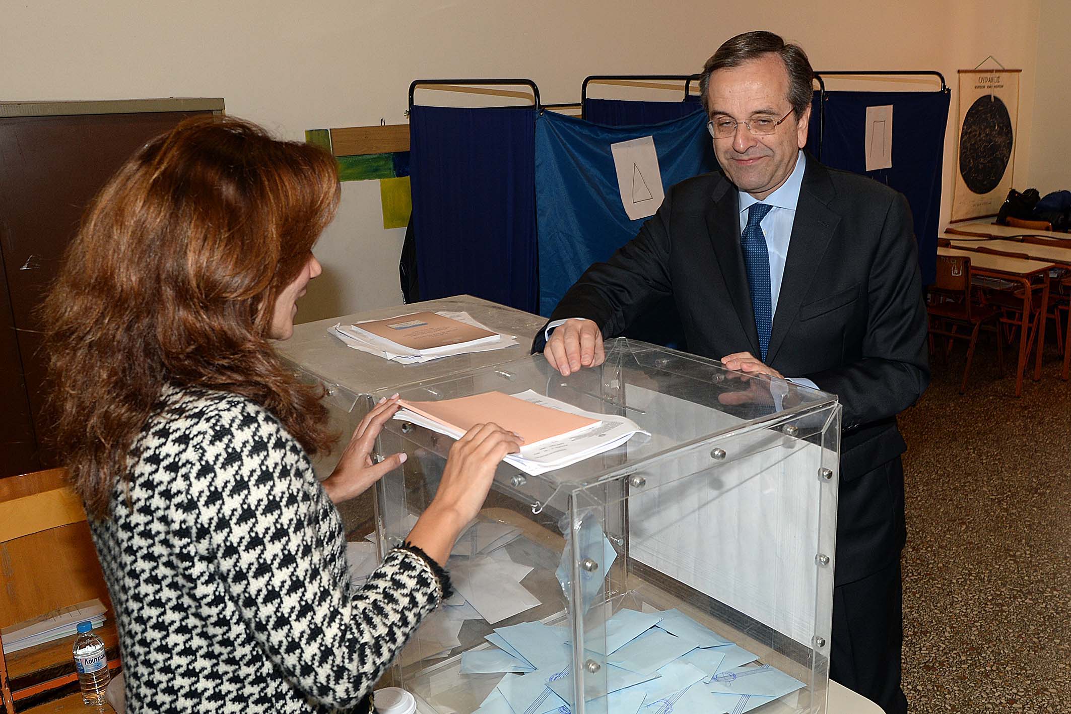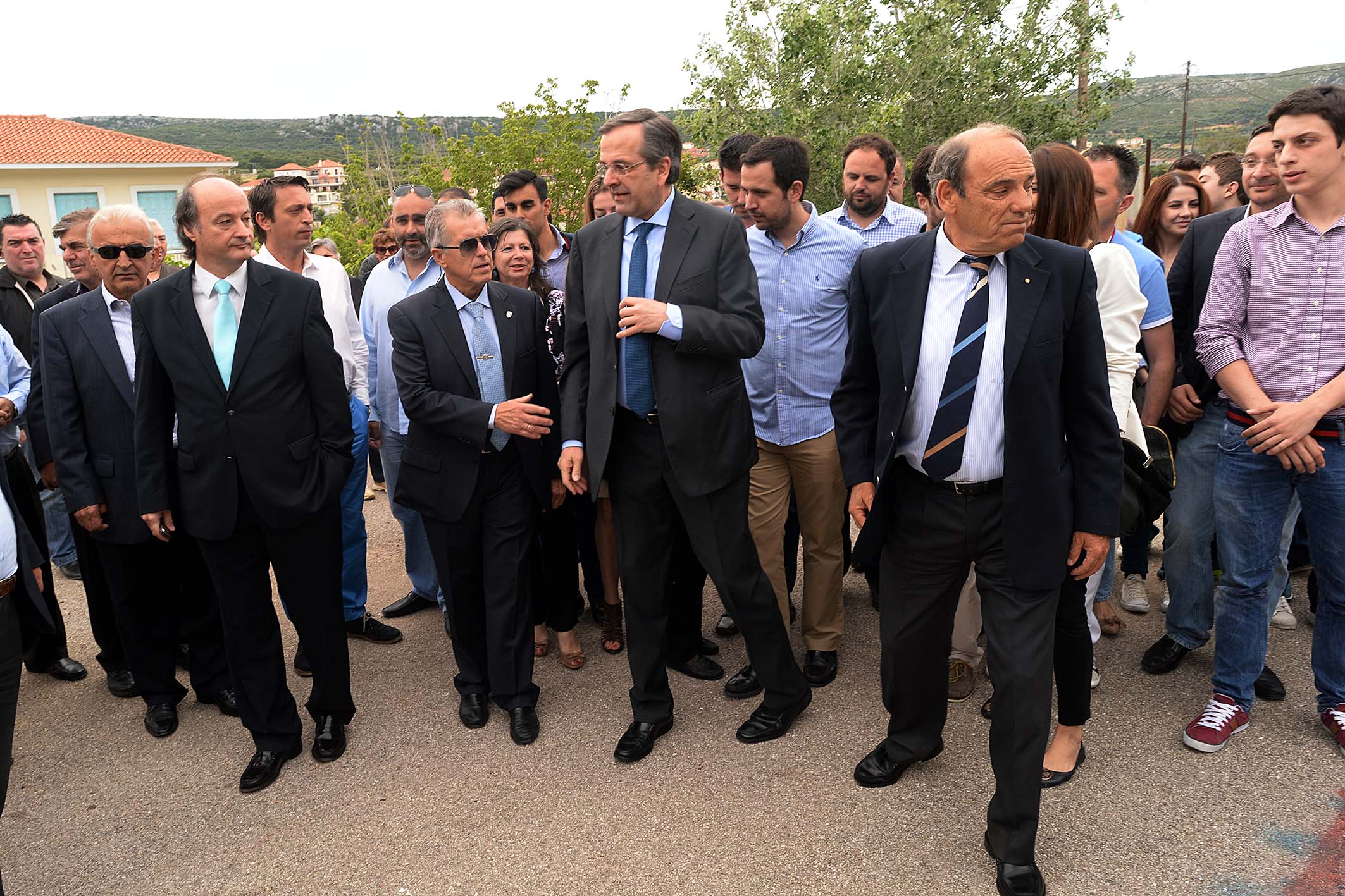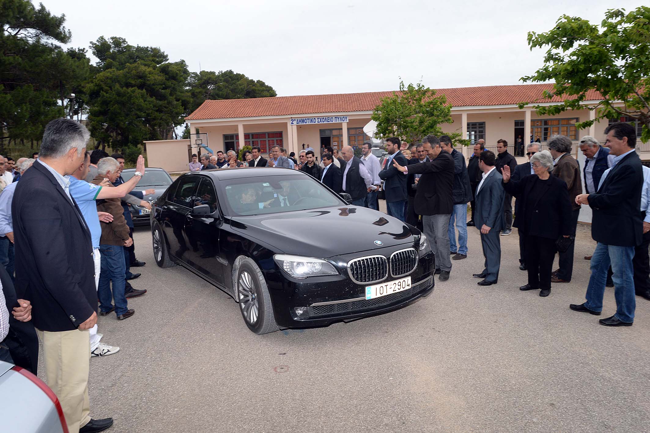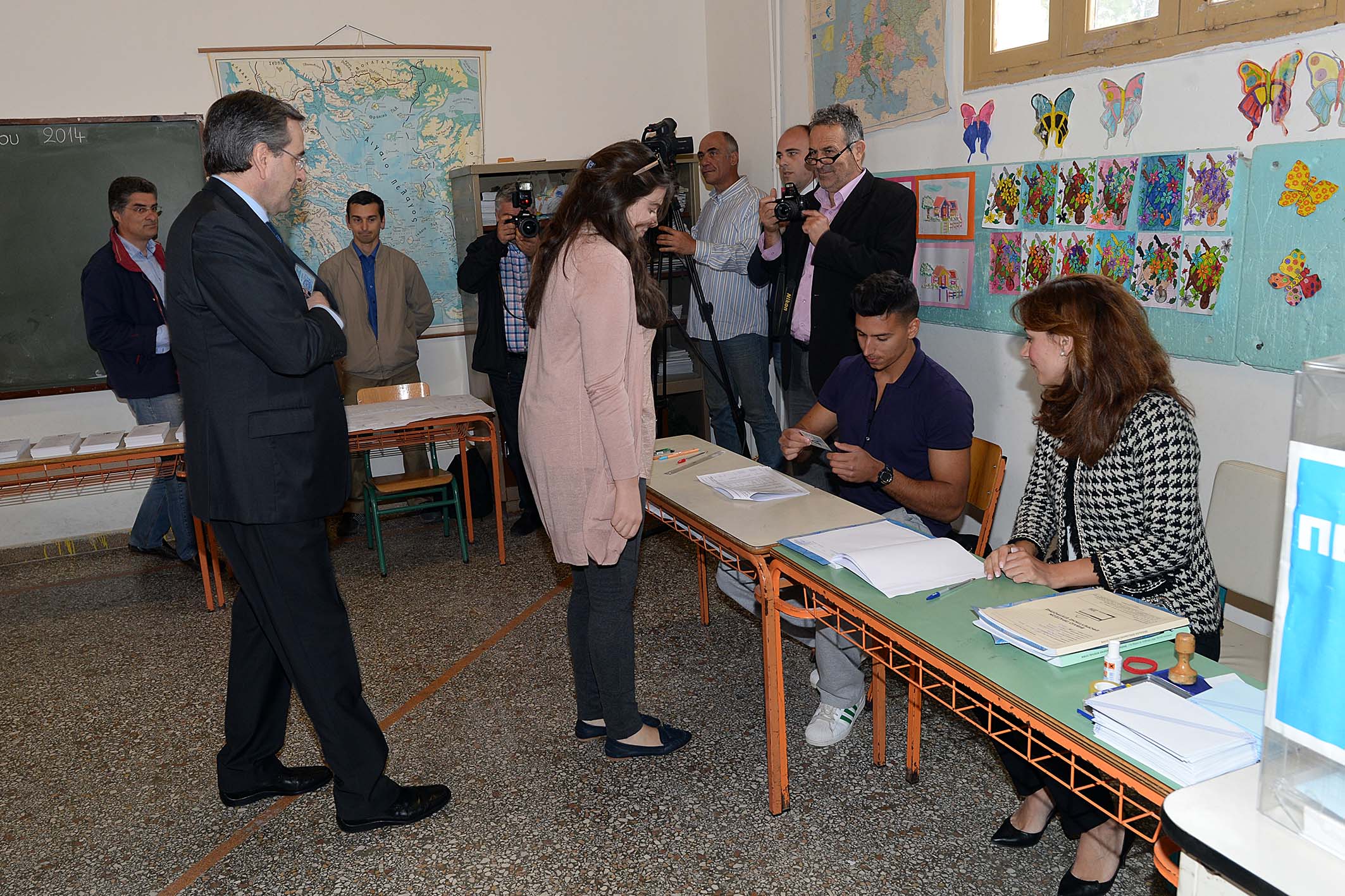 Λίγο πριν αποχωρήσει πέρασε από όλα τα εκλογικά τμήματα στο 1ο και 2ο Δημοτικό Σχολείο, όπου χαιρέτησε όλα τα μέλη της εφορευτικής επιτροπής και τους δικαστικούς αντιπροσώπους, ενώ φωτογραφήθηκε τόσο με τους νεολάιους, όσο και με τους... παλαίμαχους του κόμματος. Στη συνέχεια αναχώρησε για την Αθήνα.