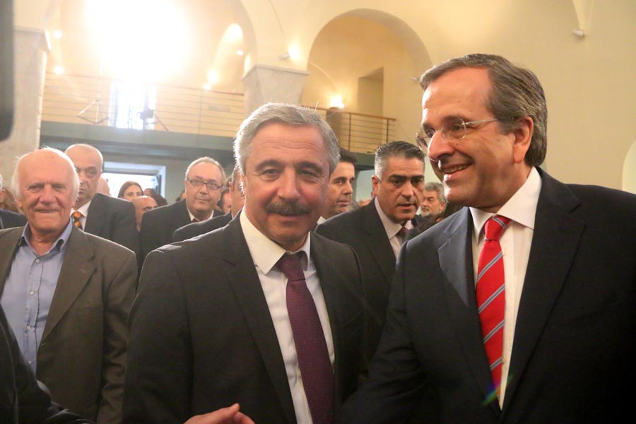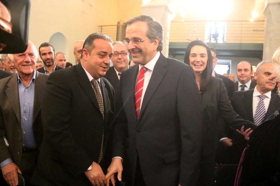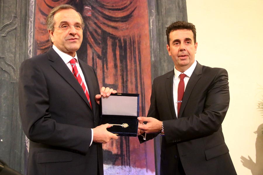Τιμάμε σήμερα τον άνθρωπο Αντώνη Σαμαρά, υπογράμμισε ο δήμαρχος της πόλης Δημήτρης Κωστούρος και πρόσθεσε απευθυνόμενος στον πρωθυπουργό: «Σας τιμά μια πόλη που αντιστέκεται στη βία των λίγων».
