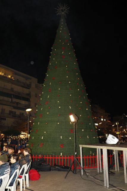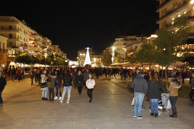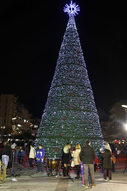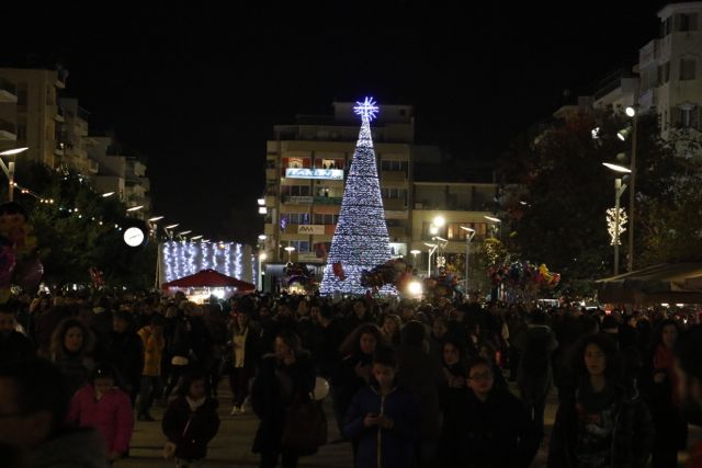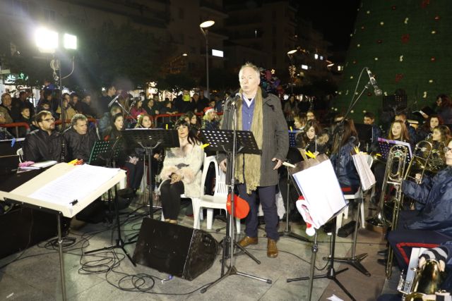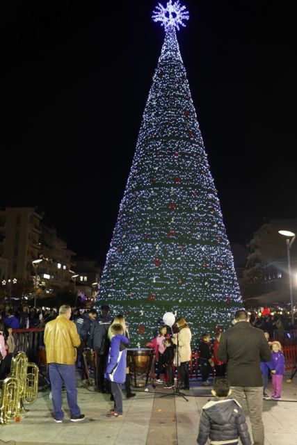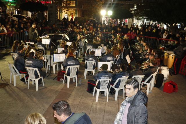 Η φωταγώγηση έγινε με τη συνοδεία πυροτεχνημάτων, παρουσία παιδιών κάθε ηλικίας, αλλά και μεγάλων, που είχαν κατακλύσει την πλατεία.
