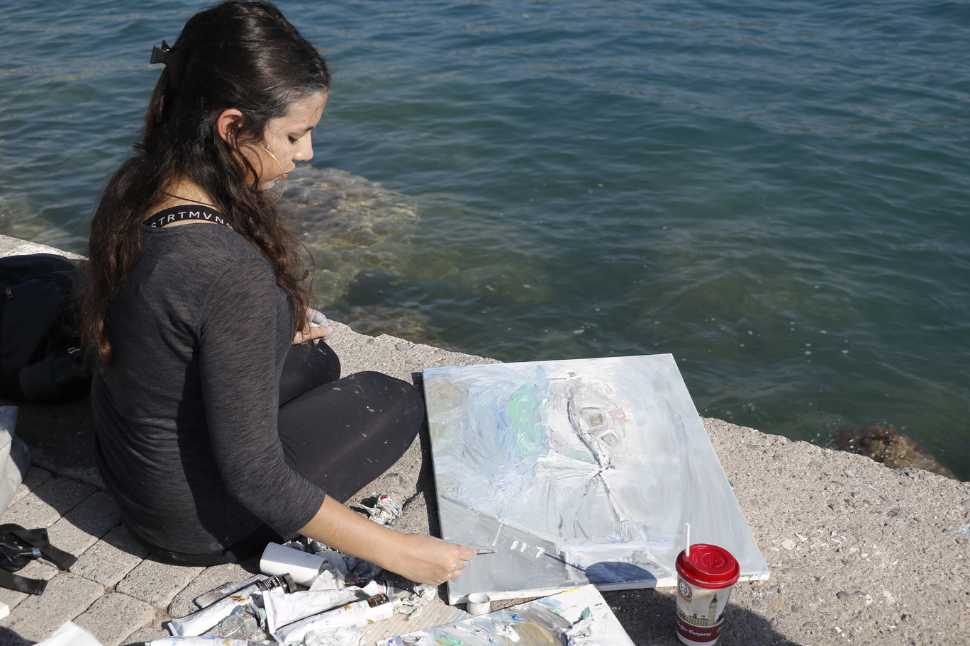 Η Δήμητρα που αποτύπωνε την παραλία και το φάρο κεντώντας, επεσήμανε: “Μου αρέσει το κέντημα. Στην Καλαμάτα υπάρχει μια παράδοση με το κέντημα και το μετάξι”. Σημείωσε πως “μου αρέσει πάρα πολύ εδώ, ο φάρος, οι σκιές και τα χρώματα. Μας ενδιαφέρει και το έργο του Παρθένη. Είναι μια καινούργια εμπειρία, είναι πολύ όμορφη και ήσυχη πόλη η Καλαμάτα και μου αρέσει η ευθεία, το ό,τι δεν έχει ανηφόρες”.