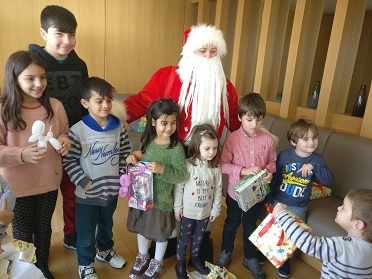 Στο φιλόξενο χώρο του loft του Ξενοδοχείου "Pharae Palace" ο κλόουν είχε ετοιμάσει πολλές εκπλήξεις για τους μικρούς του φίλους, οι οποίοι τον υποδέχτηκαν με χαμόγελα. Από την Πρωτοχρονιάτικη γιορτή δε θα μπορούσε να λείψει ο Άγιος Βασίλης. Αφού μοίρασε τα δώρα του σε όλα τα παιδιά των δημοσιογράφων της Καλαμάτας, ευχήθηκε σε όλους υγεία και καλές ειδήσεις για το 2018.