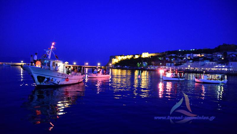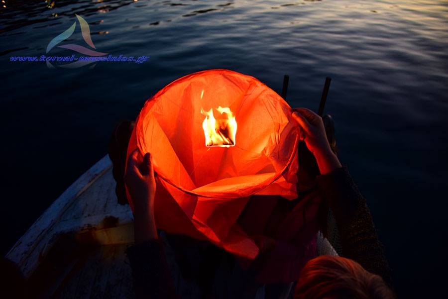 Με ένα σάλτο μπουκάραμε στις βάρκες, αμολήσαμε τους κάβους και ξεκινήσαμε τις βόλτες στην μεγάλη αγκάλη του λιμανιού. Μια λαοθάλασσα στην προκυμαία να παρακολουθεί το γεγονός κι εμείς μέσα απ τις βάρκες σα καλοί καπεταναίοι να ταξιδεύουμε τα αερόστατά μας ψηλά στον ουρανό... μια ευχή, ένα χαμόγελο και μια ελπίδα πως σε τούτη τη ζωή υπάρχει φως σε γη κι ουρανό για να φωτίζει τα όνειρά μας και να καθοδηγεί τα βήματά μας με αγάπη! Ευχαριστούμε όλους τους ψαράδες, το Φώτη και τον Τάσο, τον κ. Νίκο, τον Αντρέα, το Νίκο, τον Θανάση και τον Χρήστο, που με την συμμετοχή τους μπορούμε να πραγματοποιούμε κάθε μας εκδήλωση για την όμορφη Κορώνη...