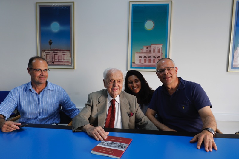 Ο Μένης Παπαδόπουλος περιστοιχισμένος από τους γιους του Φώτη και Νάσο και την εγγονή του Τατιάνα