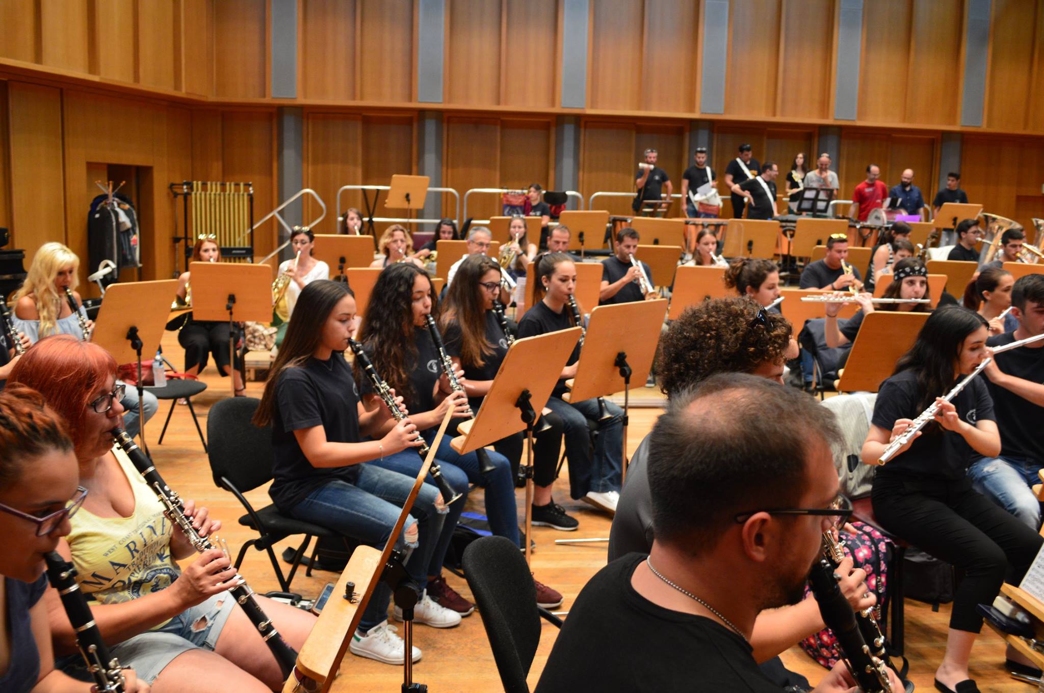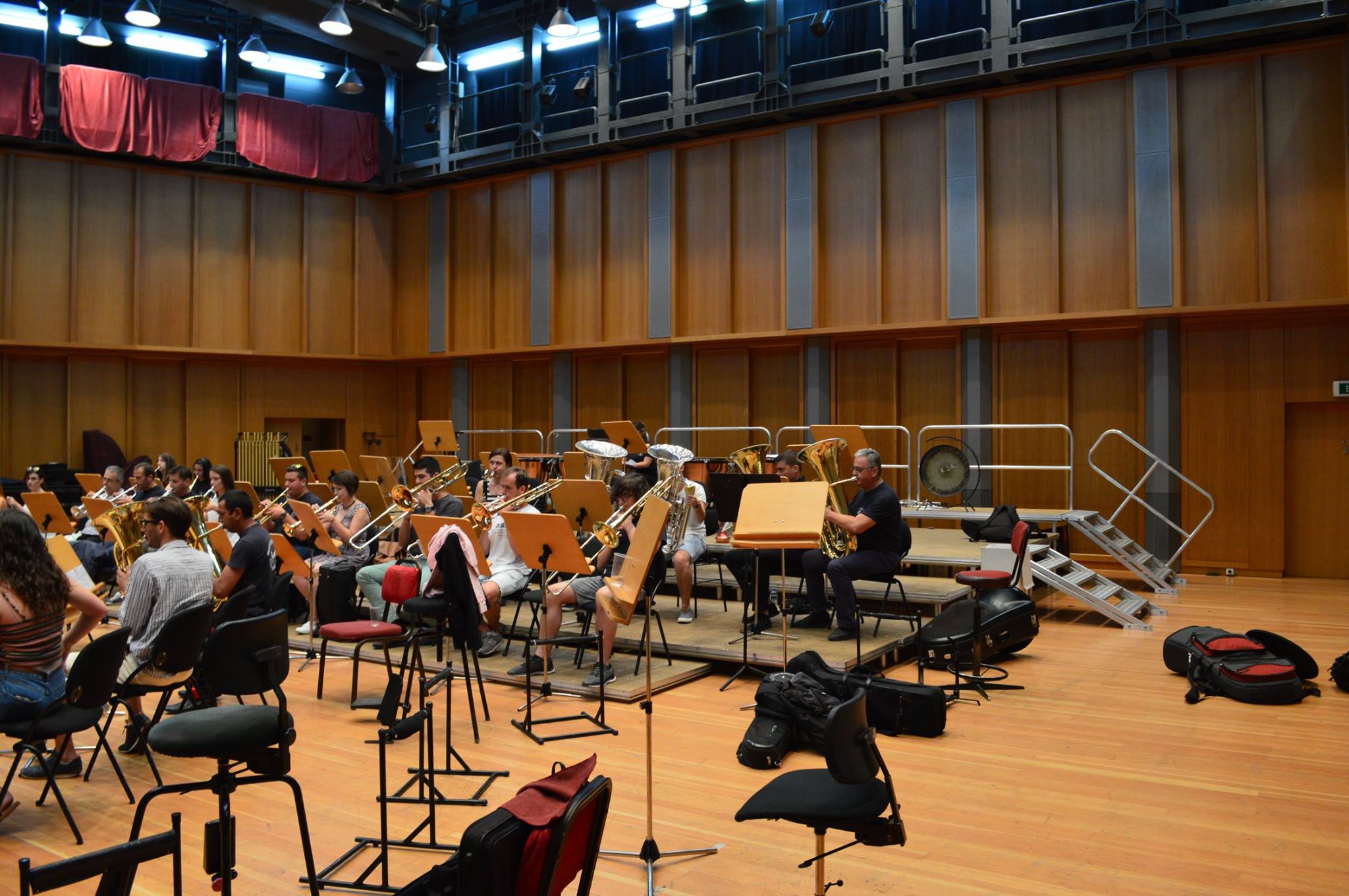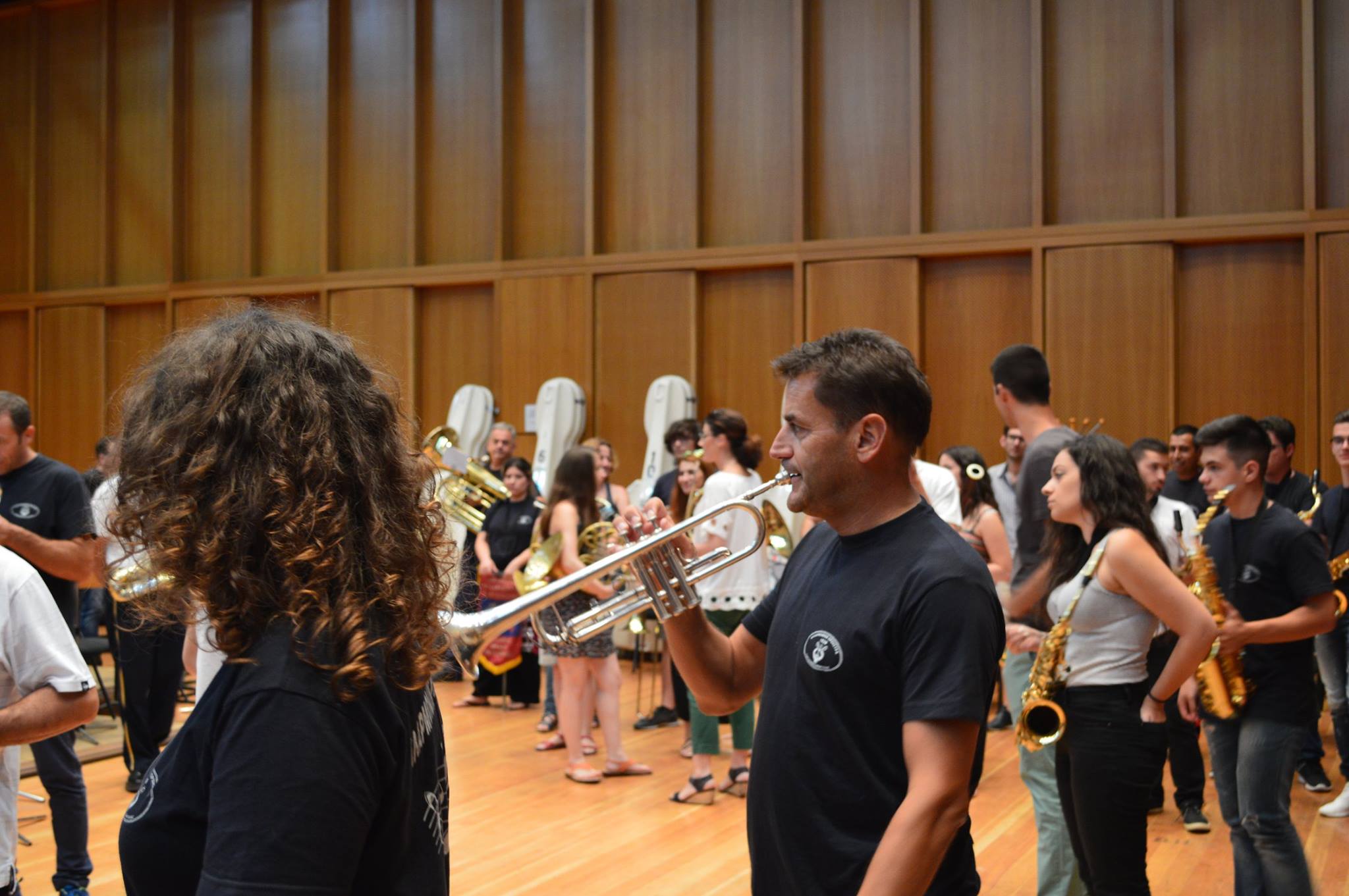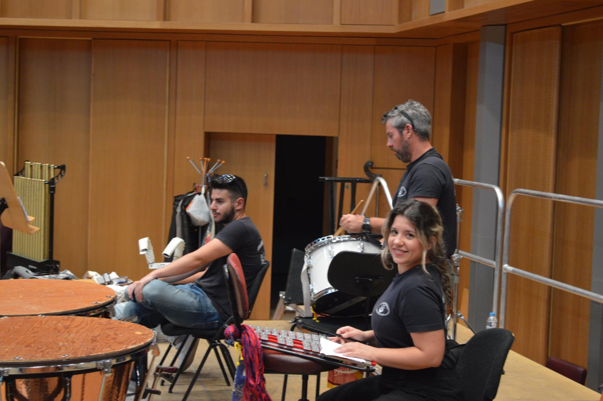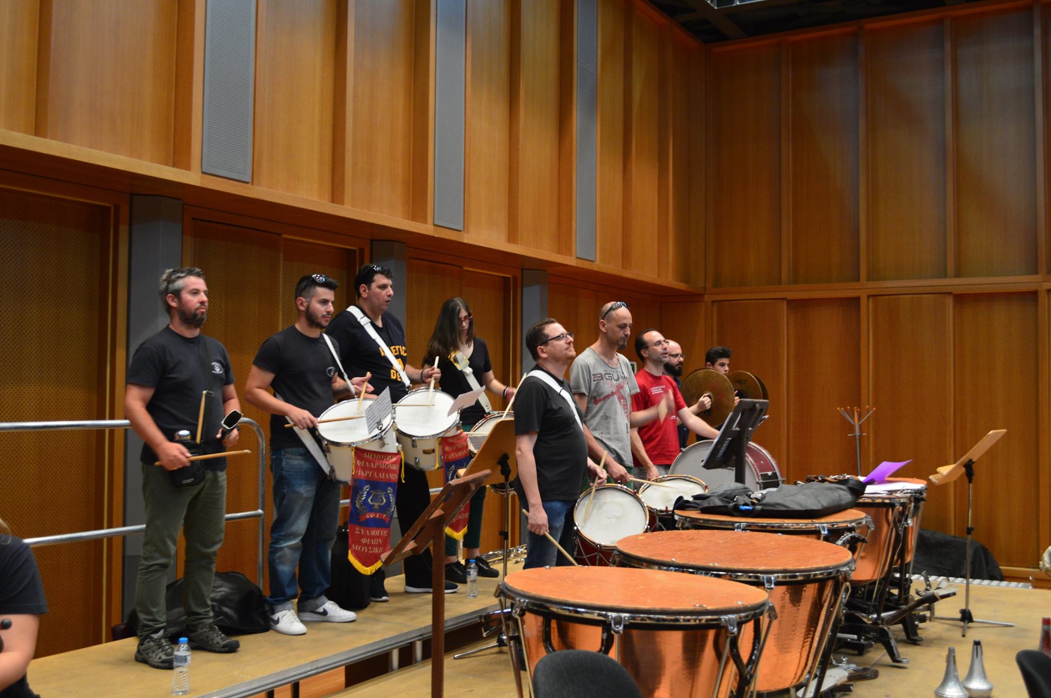 Αρχικώς όλοι οι μουσικοί μας έζησαν μια μοναδική εμπειρία κατά τη διάρκεια της πρόβας μας στην αίθουσα δοκιμών της Κρατικής Ορχήστρας του Μεγάρου Μουσικής Αθηνών. Ύστερα μεταβήκαμε στο χώρο του Καλλιμάρμαρου Σταδίου όπου παίξαμε και δώσαμε τον καλύτερό μας εαυτό σε δύο από τα γνωστότερα τραγούδια του συγκροτήματος , το: «Moment of Glory» και το « Νo οne like you» ενορχηστρωμένα και προσαρμοσμένα σε ορχήστα πνευστών από τον φίλο και αρχιμουσικό κ. Παναγιώτη Βλάχο.