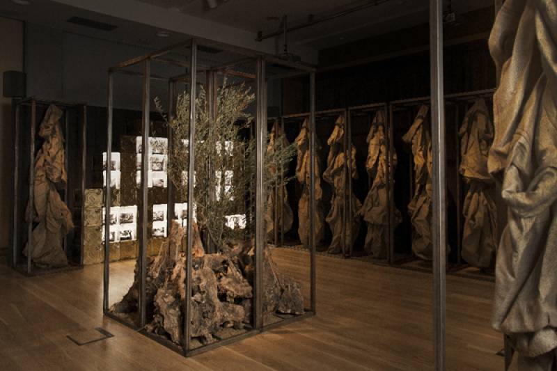 Πρόκειται για μια εικαστική εξιστόρηση της πορείας του λαδιού στον χώρο της Μεσογείου: από το χειροπιαστό χώμα στο άυλο φως του λύχνου, από τη συμπαγή ακανόνιστη ρίζα στην τυποποιημένη συσκευασία. Η εγκατάσταση συνδιαλέγεται με το λάδι ως υλικό προϊόν και ως σύμβολο, ριζωμένο στον πολιτισμό και στην παράδοση των μεσογειακών χωρών και θα διαρκέσει μέχρι τις 29 Οκτωβρίου.