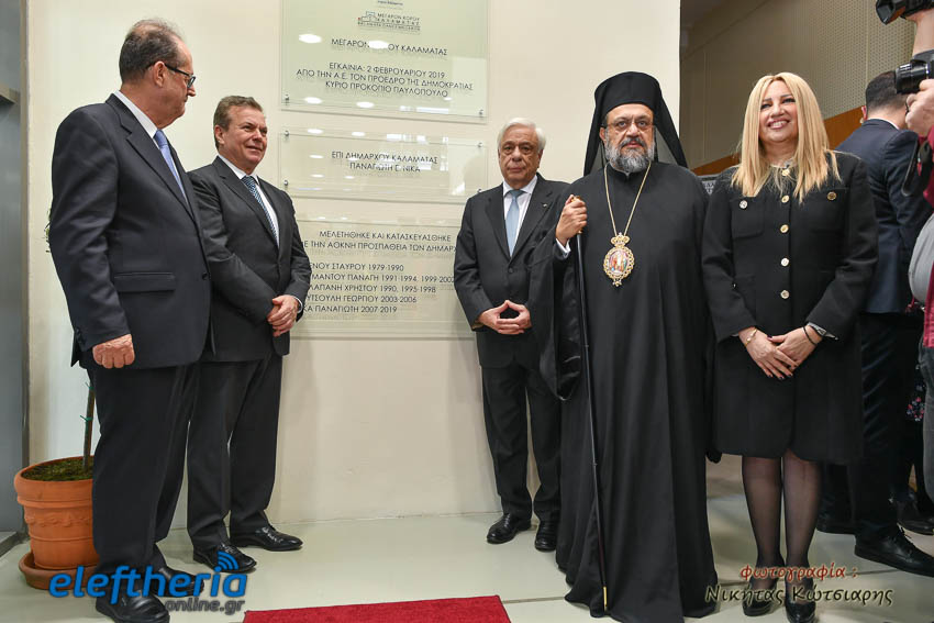 Την πλάκα με την ταυτότητα του σπουδαίου αυτού έργου πολιτισμού αποκάλυψαν ο Πρόεδρος της Δημοκρατίας, ο υφυπουργός Εργασίας και Κοινωνικής Ασφάλισης Αναστάσιος Πετρόπουλος και ο μητροπολίτης Μεσσηνίας Χρυσόστομος.
